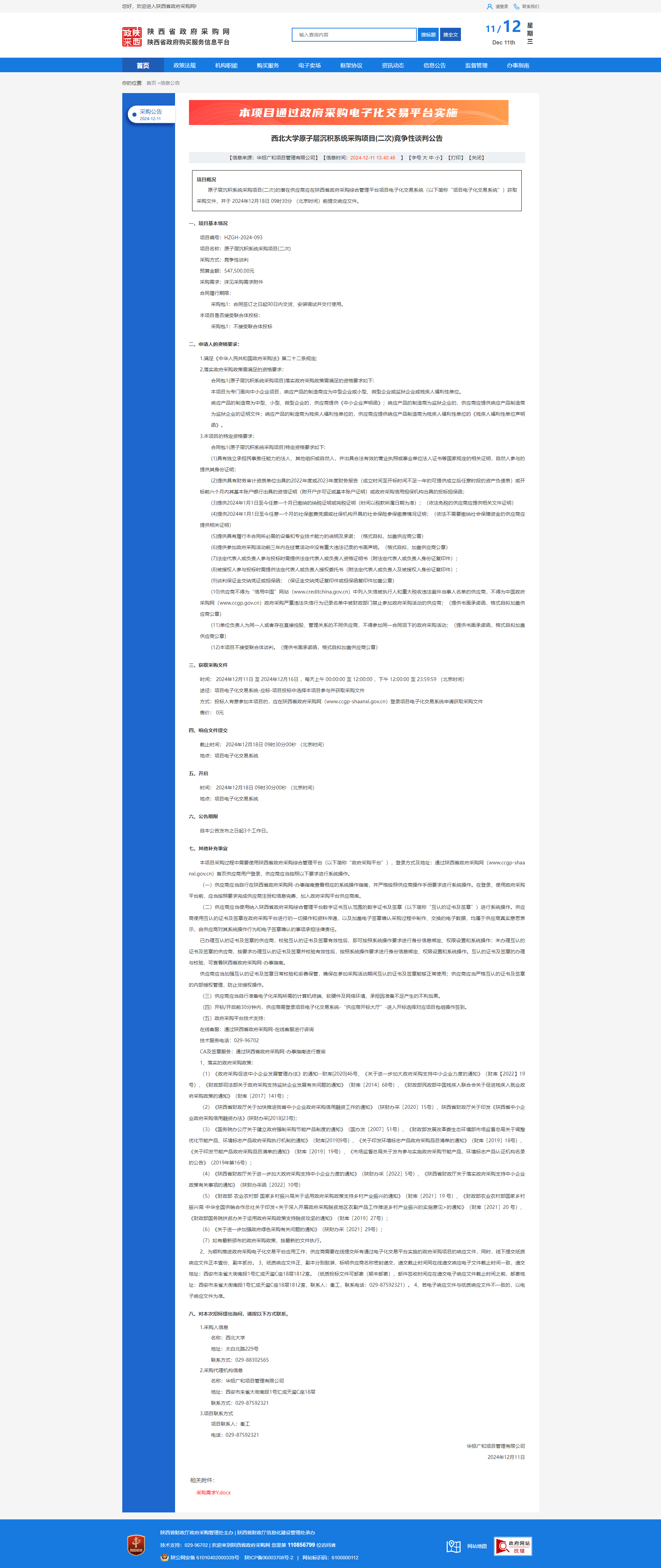九游会在线登录官网原子层沉积系统采购项目(二次)竞争性谈判公告