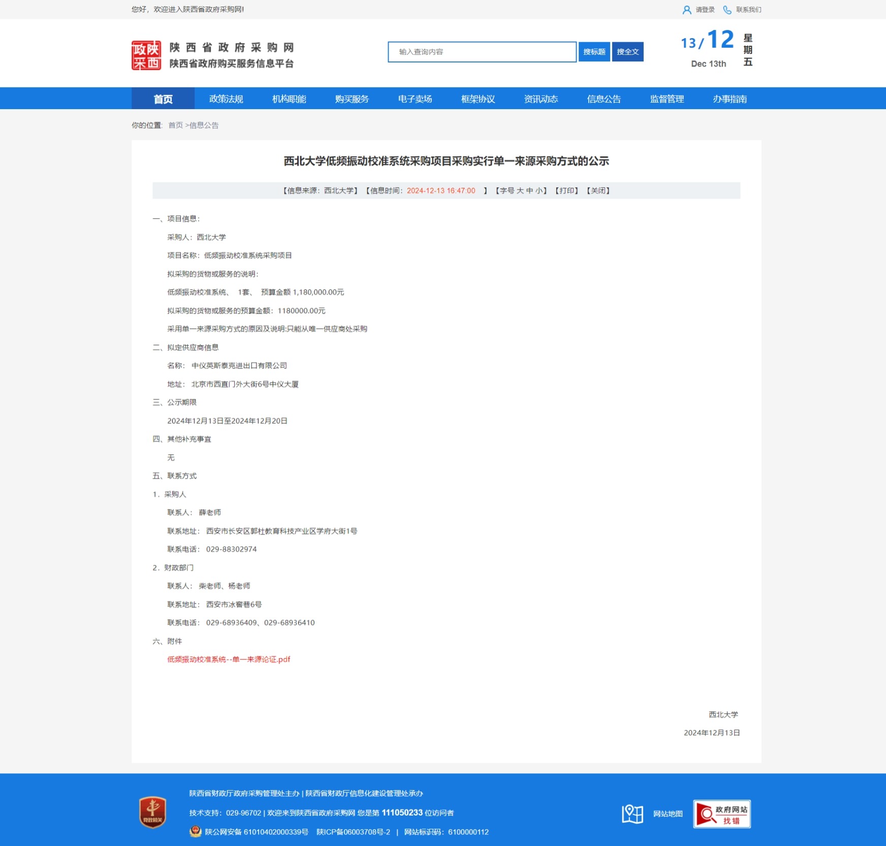 九游会在线登录官网低频振动校准系统采购项目采购实行单一来源采购方式的公示 作者: 编辑:薛利娟 时间:2024-12-13 原公告链接:https://www.ccgp-shaanxi.gov.cn/freecms/site/shaanxi/ggxx/info/2024/8a69c037936597080193bf31a3243f93.html?noticeType=001051¬iceId=706ab613-b930-11ef-8063-08c0eb20c666