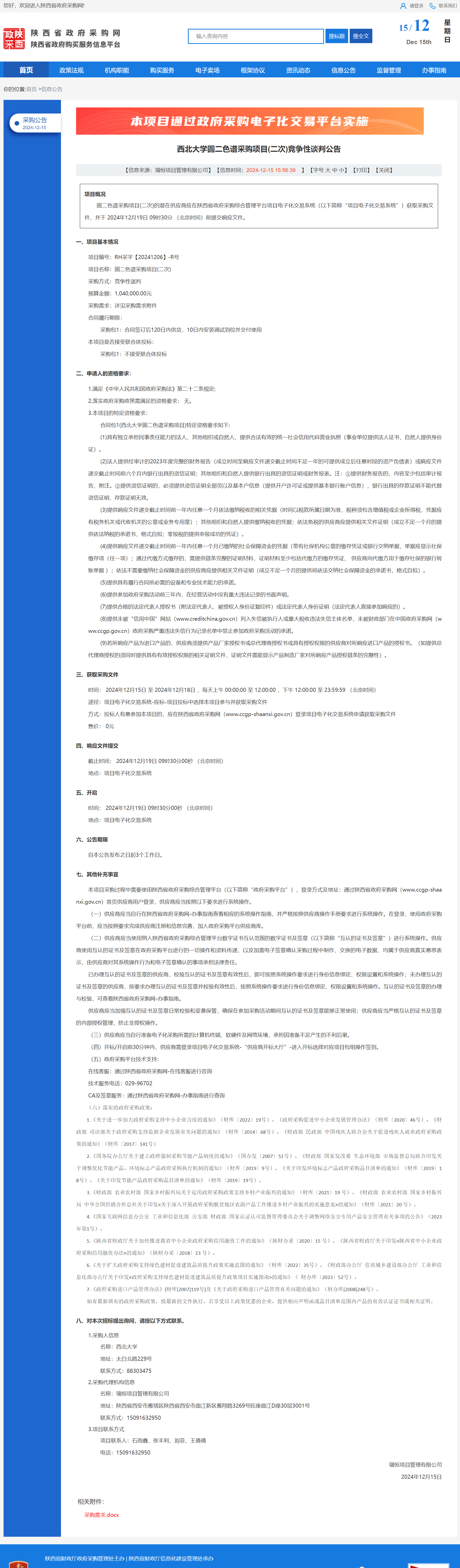 九游会在线登录官网圆二色谱采购项目(二次)竞争性谈判公告 作者:采购与招标办公室 编辑: 时间:2024-12-15 原公告链接:https://www.ccgp-shaanxi.gov.cn/freecms/site/shaanxi/ggxx/info/2024/8a69c44e9218572b0193c94ad4d5586c.html?noticeType=001013¬iceId=bf74a89c-babb-11ef-8063-08c0eb20c666