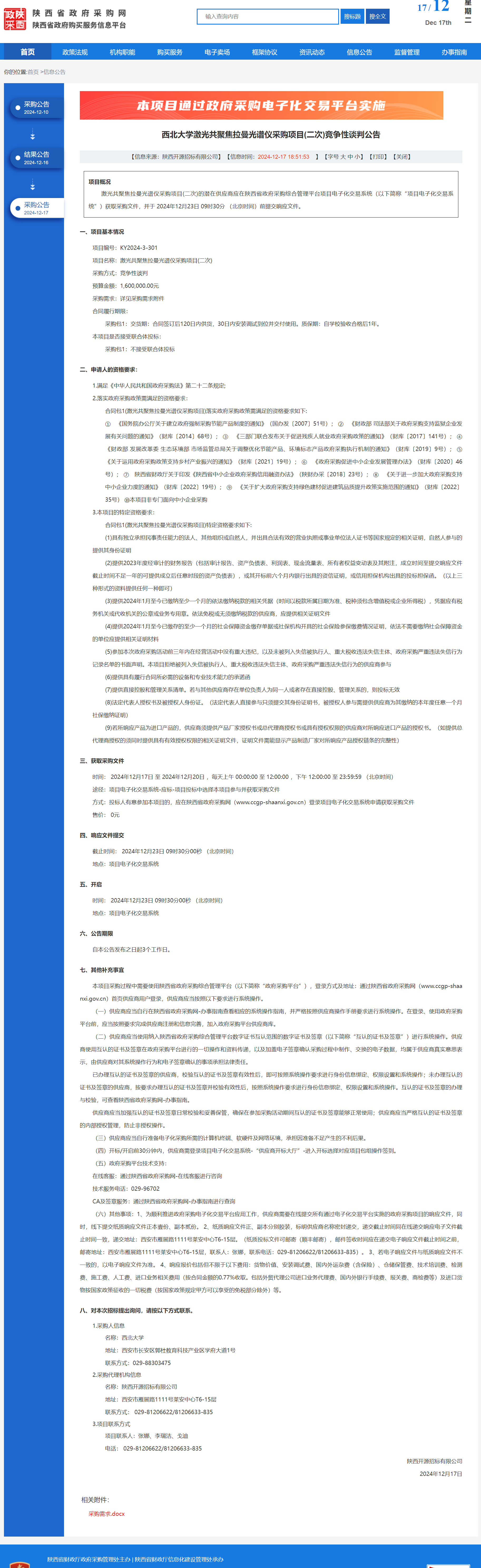九游会在线登录官网激光共聚焦拉曼光谱仪采购项目(二次)竞争性谈判公告 作者:采购与招标办公室 编辑: 时间:2024-12-17 原公告链接:https://www.ccgp-shaanxi.gov.cn/freecms/site/shaanxi/ggxx/info/2024/8a69c44e9218572b0193d434f6c730a9.html?noticeType=001013¬iceId=8ed4237e-bc66-11ef-8063-08c0eb20c666