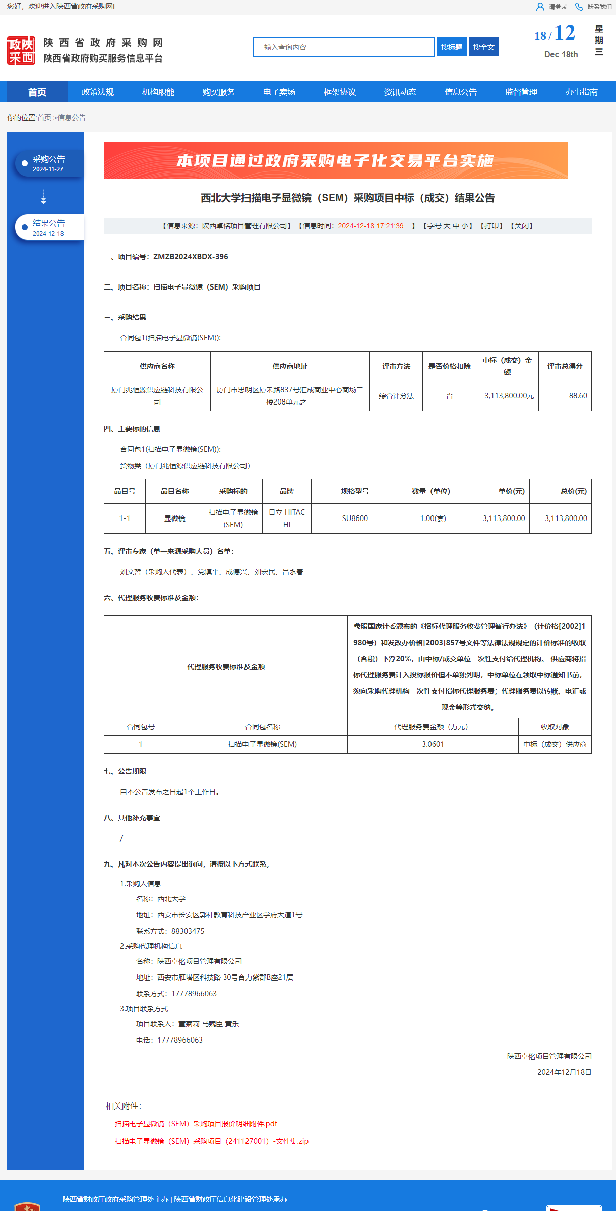 九游会在线登录官网扫描电子显微镜(SEM)采购项目中标(成交)结果公告 作者:采购与招标办公室 编辑: 时间:2024-12-18 原公告链接:https://www.ccgp-shaanxi.gov.cn/freecms/site/shaanxi/ggxx/info/2024/8a69c95d921859f00193d90183470ad8.html?noticeType=001021¬iceId=1e709926-bd23-11ef-8063-08c0eb20c666