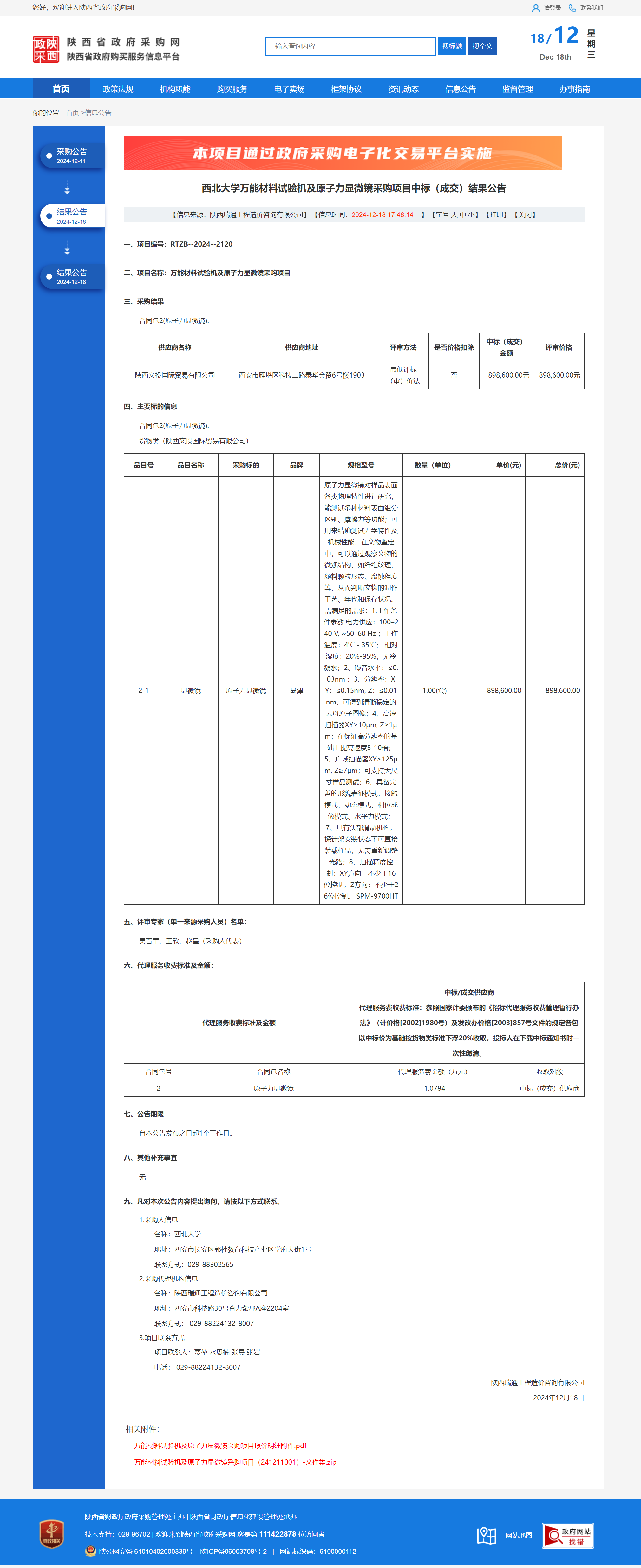 九游会在线登录官网万能材料试验机及原子力显微镜采购项目结果公告