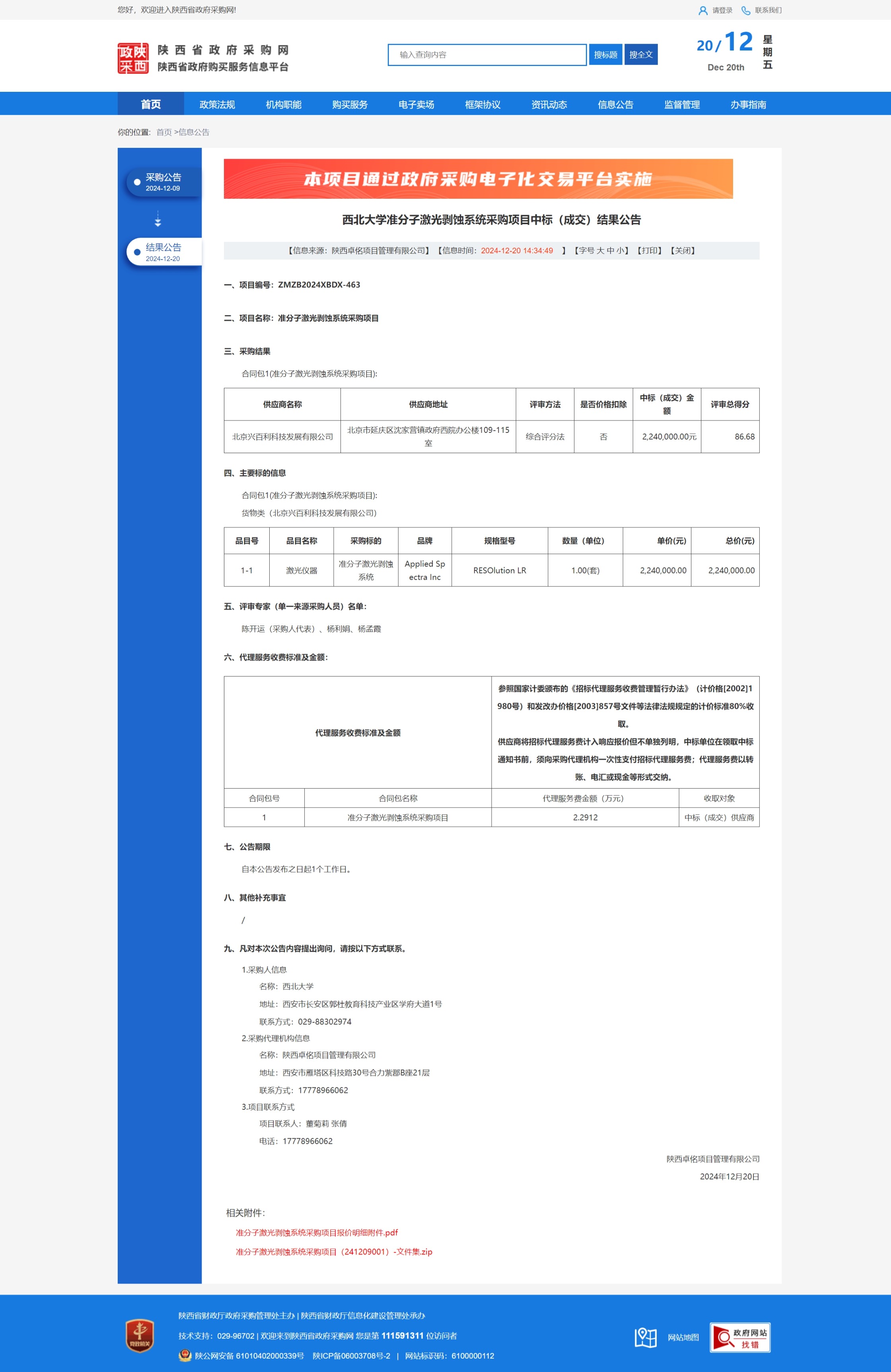 九游会在线登录官网准分子激光剥蚀系统采购项目中标(成交)结果公告 作者: 编辑:薛利娟 时间:2024-12-20 原 原公告链接:https://www.ccgp-shaanxi.gov.cn/freecms/site/shaanxi/ggxx/info/2024/8a69c44e9218572b0193e29f87ef1ad0.html?noticeType=001026¬iceId=25ebb152-be9e-11ef-8063-08c0eb20c666