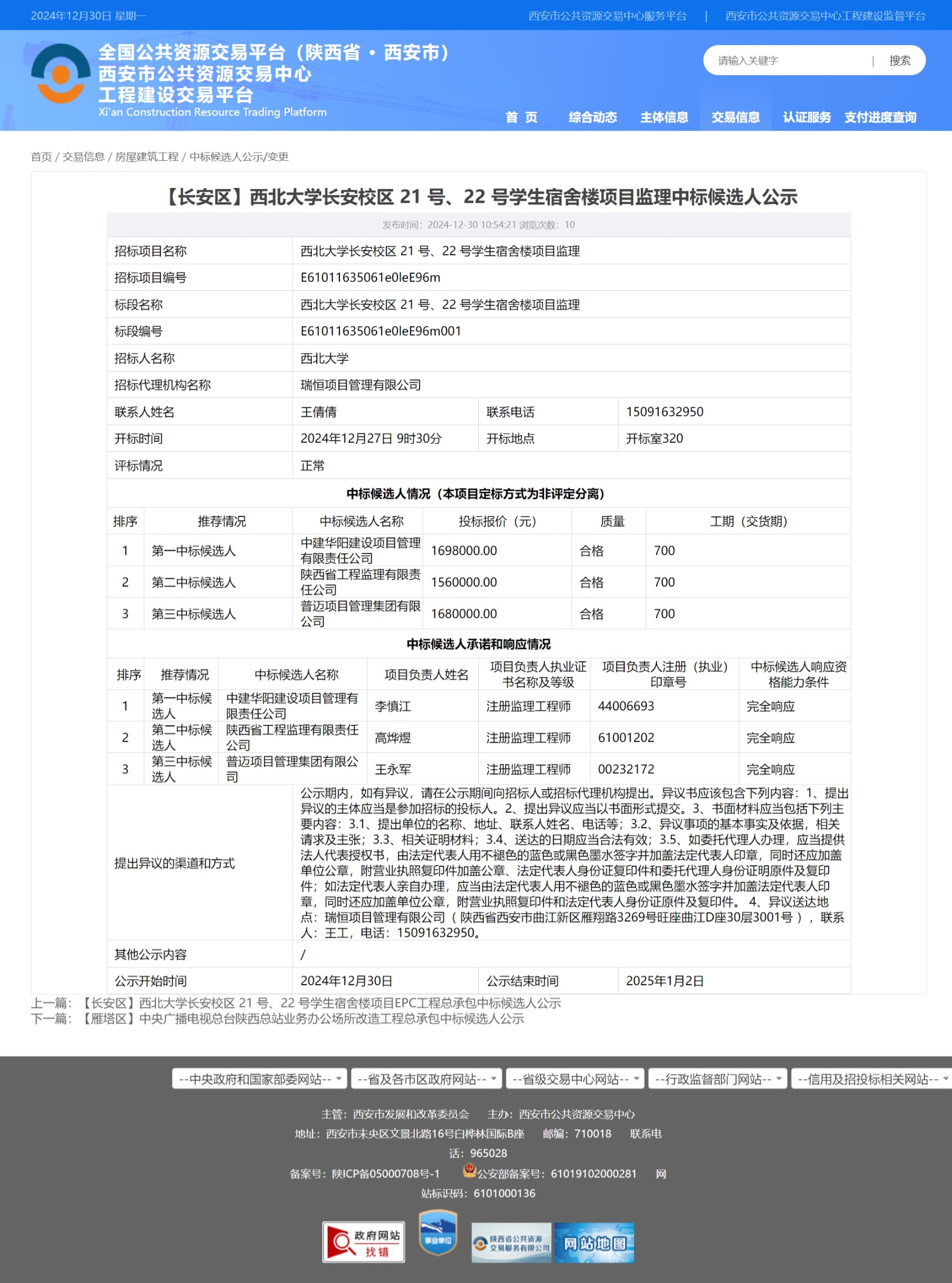 九游会在线登录官网长安校区 21 号、22 号学生宿舍楼项目监理中标候选人公示