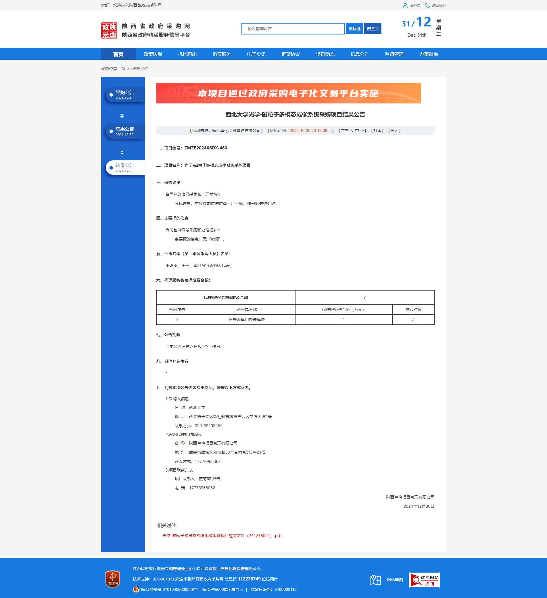 九游会在线登录官网光学-磁粒子多模态成像系统采购项目中标(成交)结果公告