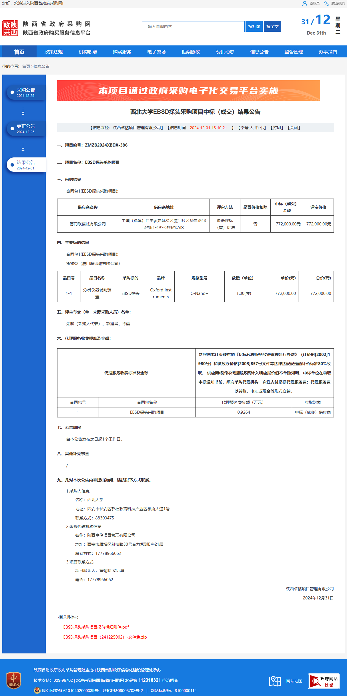 九游会在线登录官网EBSD探头采购项目中标(成交)结果公告 作者:采购与招标办公室 编辑: 时间:2024-12-31 原公告链接:https://www.ccgp-shaanxi.gov.cn/freecms/site/shaanxi/ggxx/info/2024/8a69c44e9218572b01941bbf3cfd0e2a.html?noticeType=001023¬iceId=56151531-c750-11ef-8063-08c0eb20c666