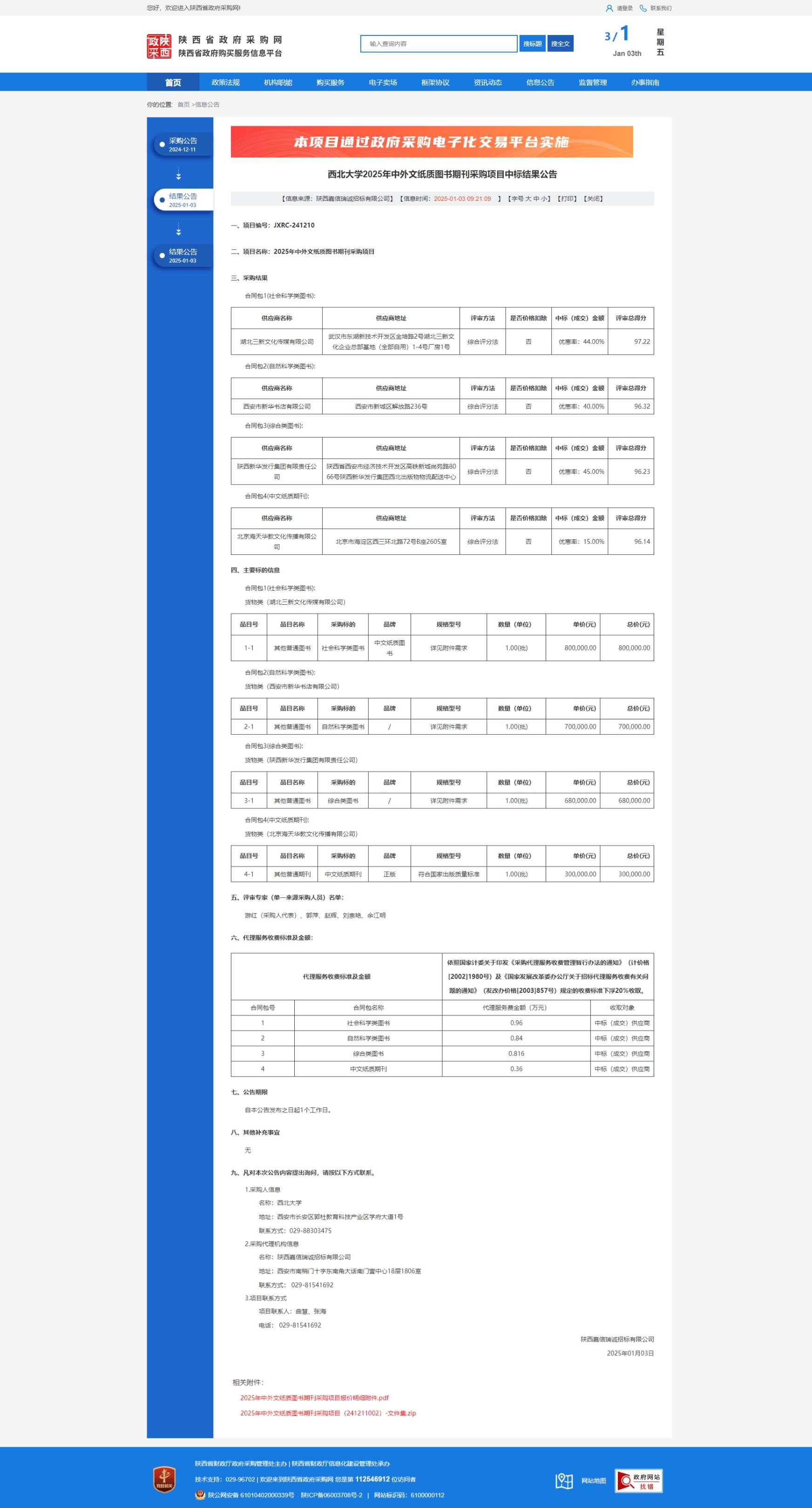 九游会在线登录官网2025年中外文纸质图书期刊采购项目中标结果公告 作者: 编辑:薛利娟 时间:2025-01-03 原公告链接:https://www.ccgp-shaanxi.gov.cn/freecms/site/shaanxi/ggxx/info/2025/8a69c95d921859f0019429b635ac1b8f.html?noticeType=001021¬iceId=ac9e64e8-c972-11ef-8063-08c0eb20c666