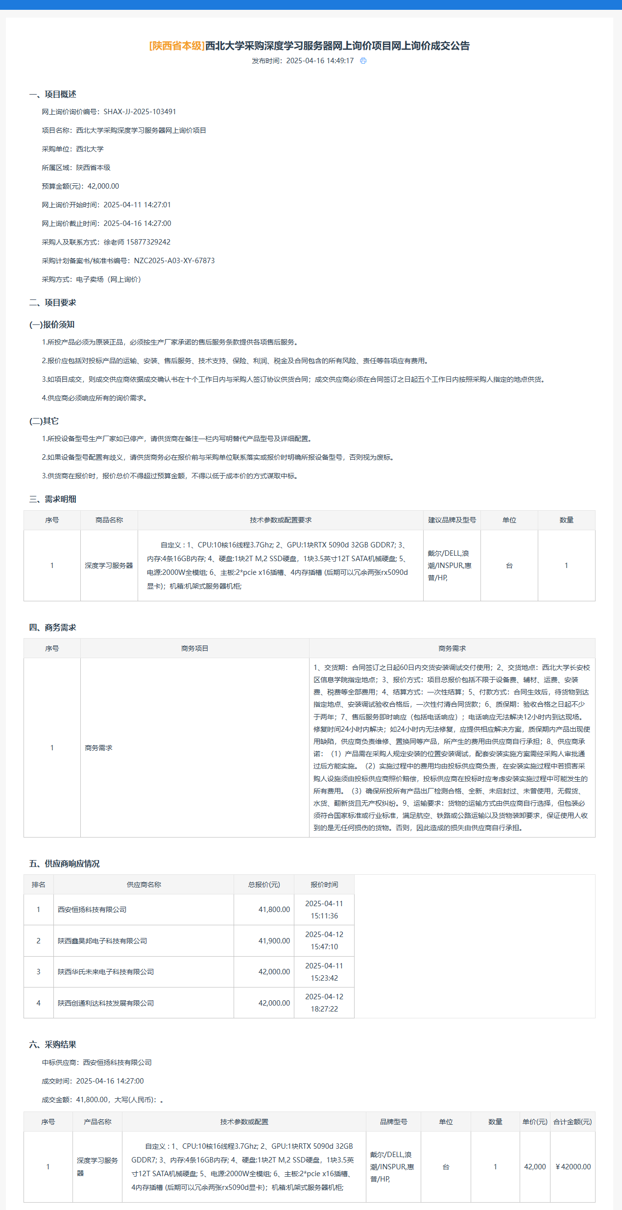 九游会在线登录官网采购深度学习服务器网上询价项目网上询价成交公告 作者:采购与招标办公室 编辑: 时间:2025-04-23 原公告链接:https://www.ccgp-shaanxi.gov.cn/gpmall-main-web/basic/noticeDetail?noticeGuid=7311545629157818368