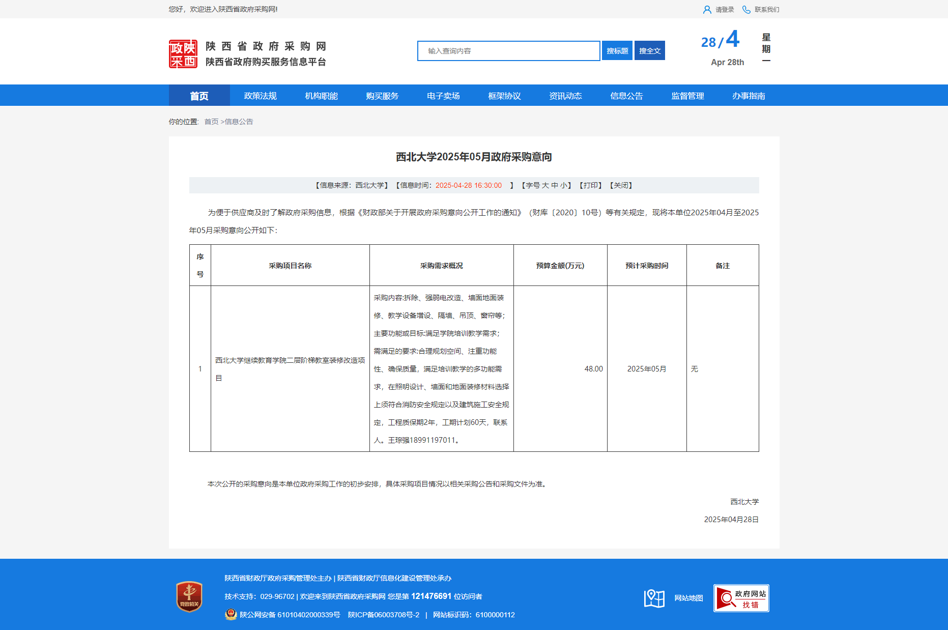 九游会在线登录官网2025年05月政府采购意向
