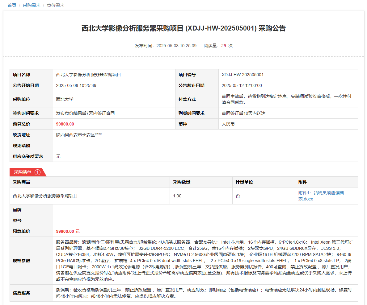 九游会在线登录官网影像分析服务器采购项目(XDJJ-HW-202505001)竞价采购公告 作者:采购与招标办公室 编辑: 时间:2025-05-08 原公告链接:https://www.ejingcai.com.cn/site/bidding/detail/18102