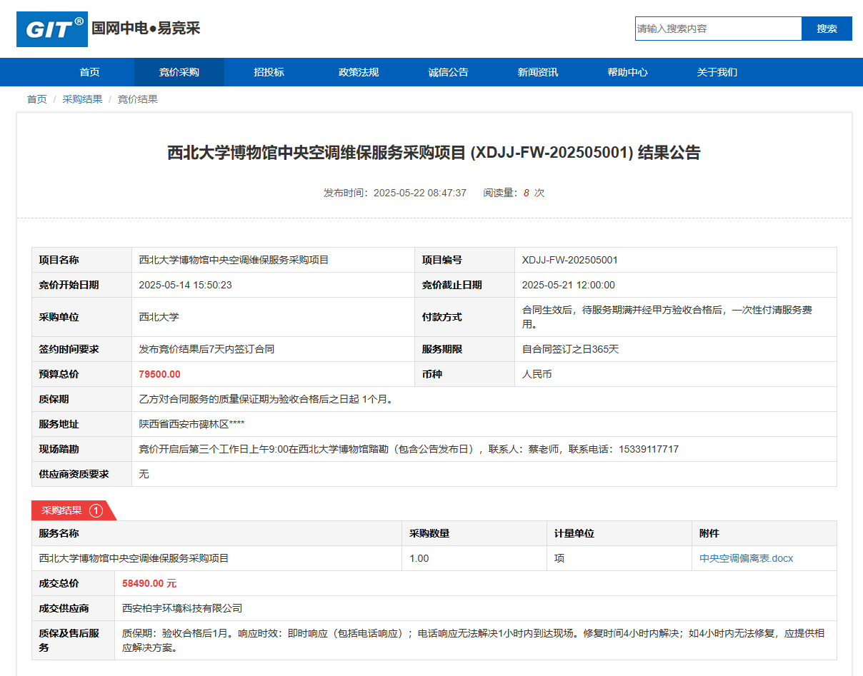 九游会在线登录官网博物馆中央空调维保服务采购项目(XDJJ-FW-202505001)竞价结果公告 作者:采购与招标办公室 编辑: 时间:2025-05-22 原公告链接:https://www.ejingcai.com.cn/site/bidding/detail/18384