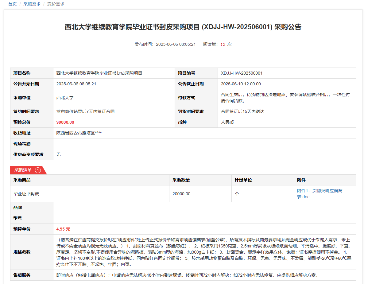 九游会在线登录官网继续教育学院毕业证书封皮采购项目(XDJJ-HW-202506001)竞价采购公告 作者:采购与招标办公室 编辑: 时间:2025-06-06 原公告链接:https://www.ejingcai.com.cn/site/bidding/detail/18697