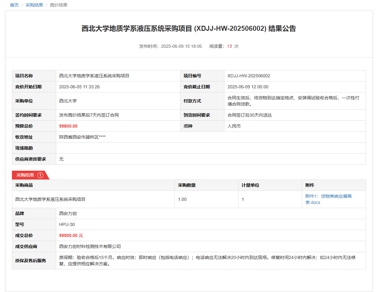 九游会在线登录官网地质学系液压系统采购项目(XDJJ-HW-202506002)竞价结果公告 作者:采购与招标办公室 编辑: 时间:2025-06-09 原公告链接:https://www.ejingcai.com.cn/site/bidding/detail/18744