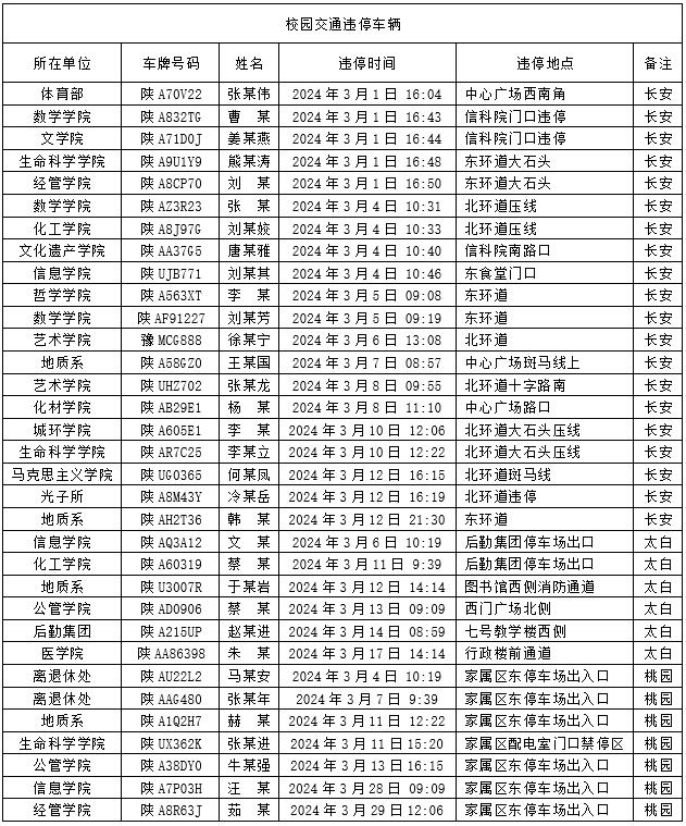 为加强校内道路交通安全管理,规范校内交通秩序,根据《九游会在线登录官网校园道路交通管理办法》有关要求,现将2024年3月校园交通违章车辆予以曝光,所在单位负责对本单位违章师生员工进行交通安全教育和日常管理。