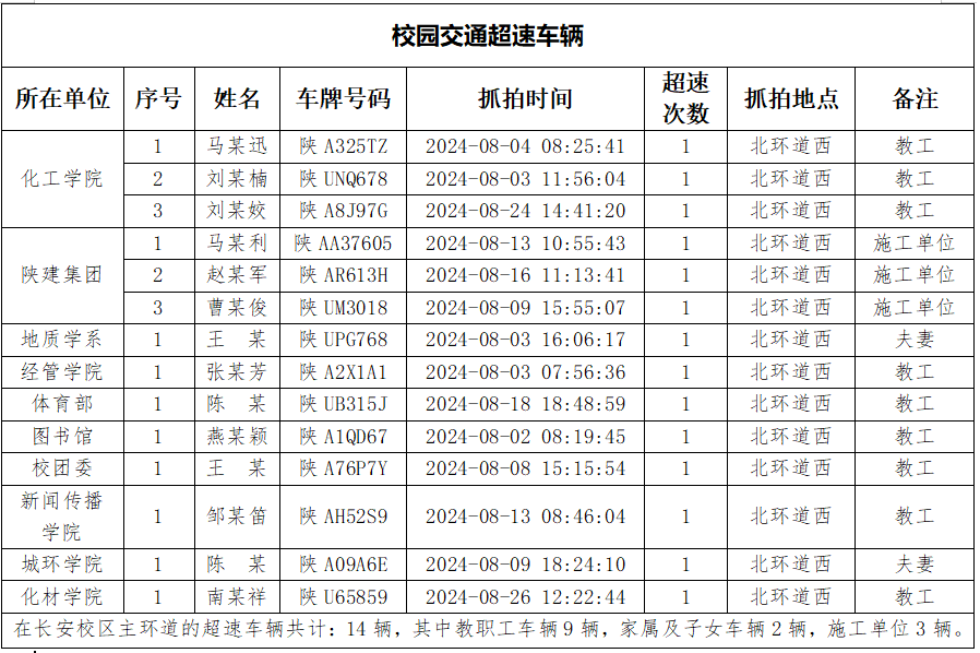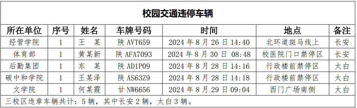 为一步加强校园交通管理,保障校园交通安全有序,维护学校正常的教学、科研和生活秩序以及师生员工的人身财产安全,根据《九游会在线登录官网校园交通安全管理规定》有关要求, 现将2024年8月校园交通违章车辆予以曝光,具体情况如下表。