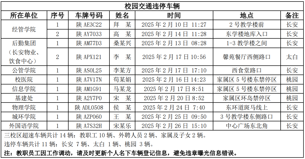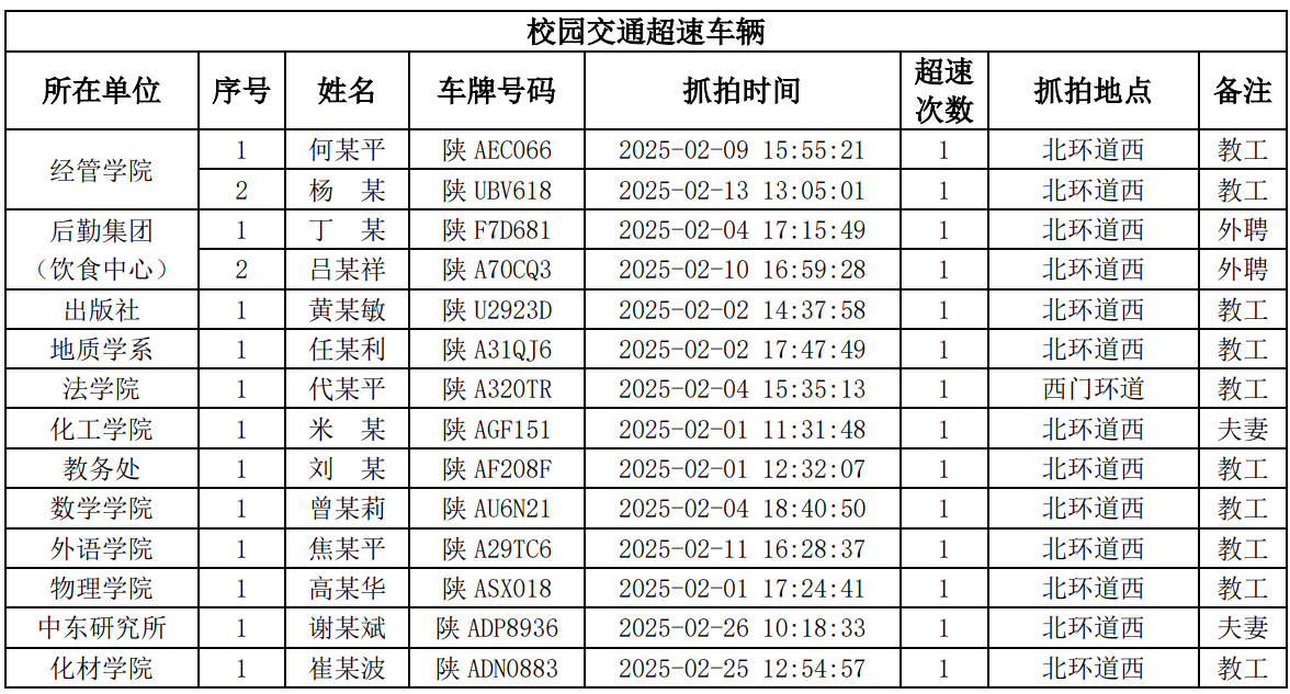 为进一步加强校园交通管理,保障校园交通安全有序,维护学校正常的教学、科研和生活秩序,切实保护师生员工的人身财产安全,根据《九游会在线登录官网校园交通安全管理规定》的相关要求,现将2025年2月校园交通违章车辆予以曝光,具体要求与违章信息如下。