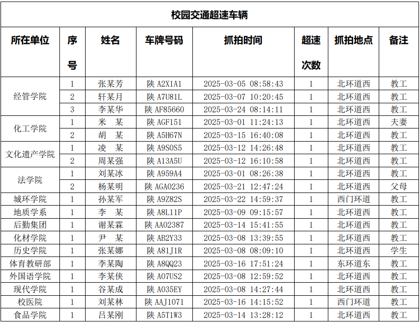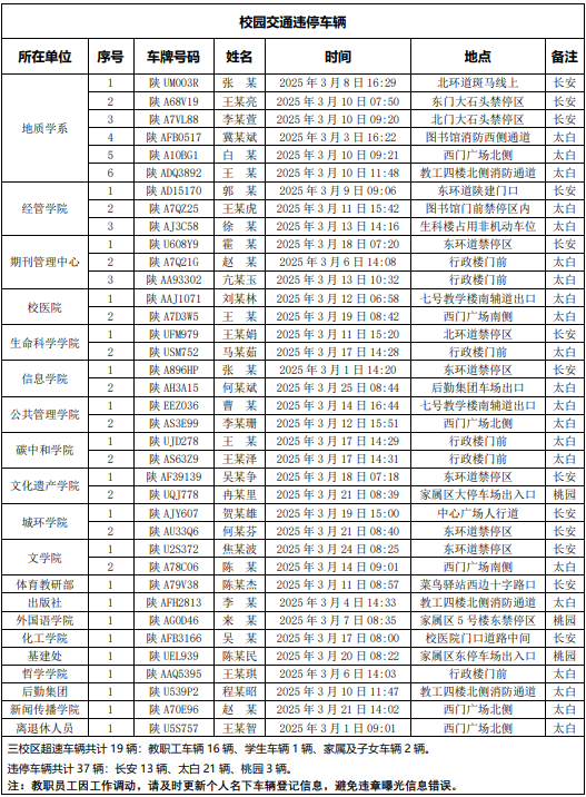 为进一步加强校园交通管理,保障校园交通安全有序,维护学校正常的教学、科研和生活秩序,切实保护师生员工的人身财产安全,根据《九游会在线登录官网校园交通安全管理规定》的相关要求,现将2025年3月校园交通违章车辆予以曝光,具体要求与违章信息如下: