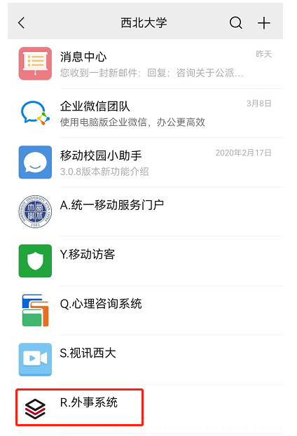 通过手机微信“九游会在线登录官网”-“消息中心”-“R.外事系统”路径,可以进行业务查看及审批。