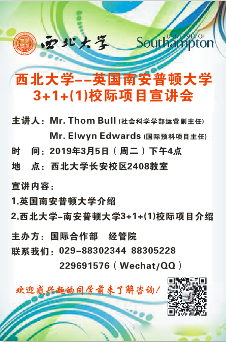 九游会在线登录官网-英国南安普顿大学3+1+(1)校际项目宣讲会