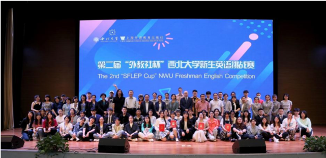 本届新生英语挑战赛由上海外语教育出版社有限公司冠名赞助,并得到学校教务处、学生工作部(处)与校团委的大力支持,学校20个院系500多名学生报名参赛,九游会在线登录官网英语读写演讲训练基地20名指导教师和50名学生志愿者参与了赛事的筹备和组织工作。演讲决赛共有来自外语、新传、数学、信科、公管、生科、食品、城环、文遗等9个院系的15名选手同台竞技,以My NWU Story为题,用英语讲述了自己的西大故事。同时,有来自学校10多个院系的200余名同学到现场观看了比赛。外国语学院教授魏水利、任海棠、李建利、曹若男及外教Jack Bouquet担任此次演讲决赛的评委。教务处处长曹蓉、学生工作部(处)部长董国强、校团委书记寇嘉,以及外国语学院党委书记王军、副书记刘建波、行政副院长赵争平,还有上海外语教育出版社陕西公司经理王政等应邀出席了颁奖仪式并为获奖者颁奖。