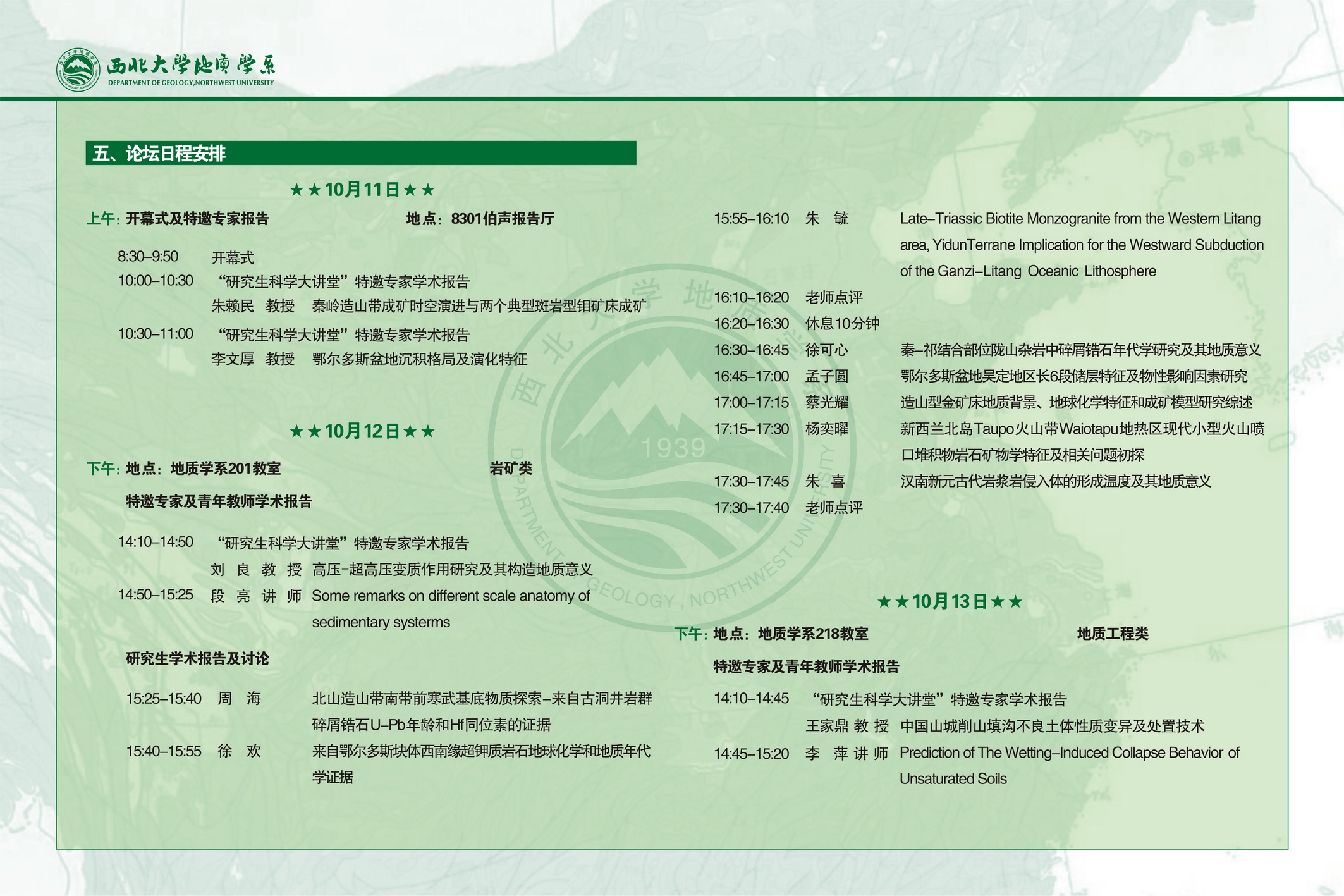 地质学系第十二届“研石”研究生学术论坛日程安排