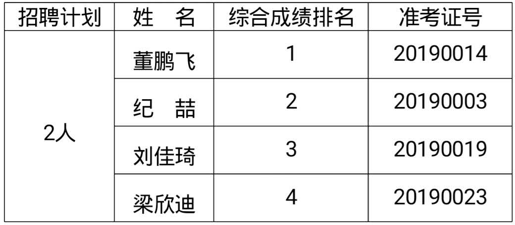 公示期结束后,学校按综合成绩从高到低根据岗位招聘计划人数确定拟聘用人选,拟聘用人选应到规定医院进行体检,体检标准参照《公务员录用体检通用标准(试行)》执行,不按照规定时间、地点参加体检,视为放弃体检。体检合格后,根据学校要求办理相关派遣手续。
