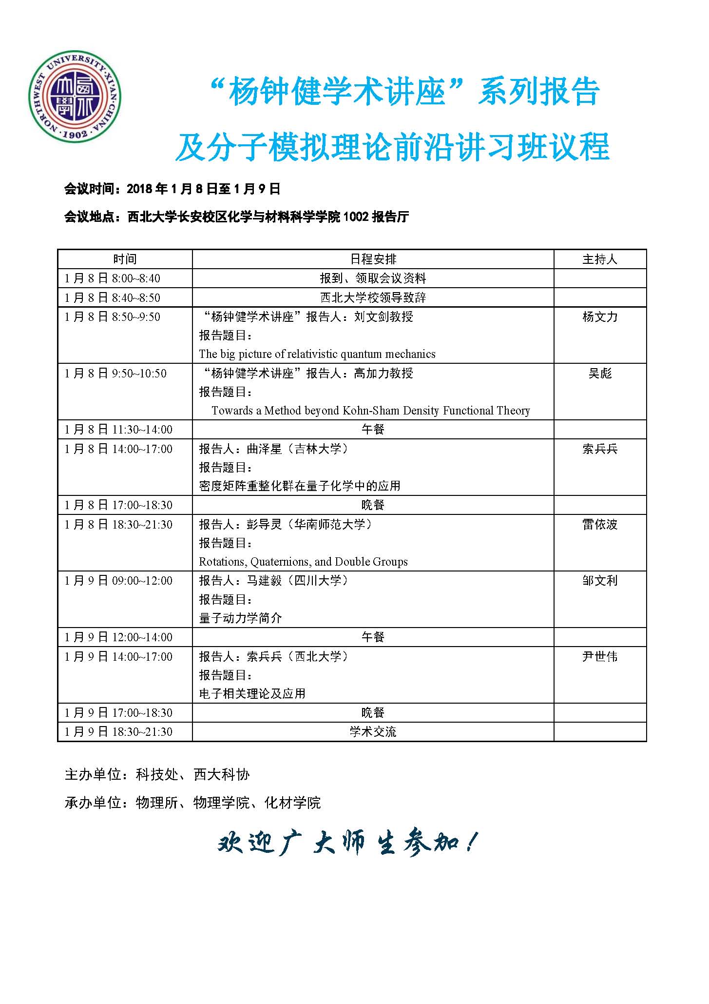 “杨钟健学术讲座”系列报告及分子模拟理论前沿讲习班议程