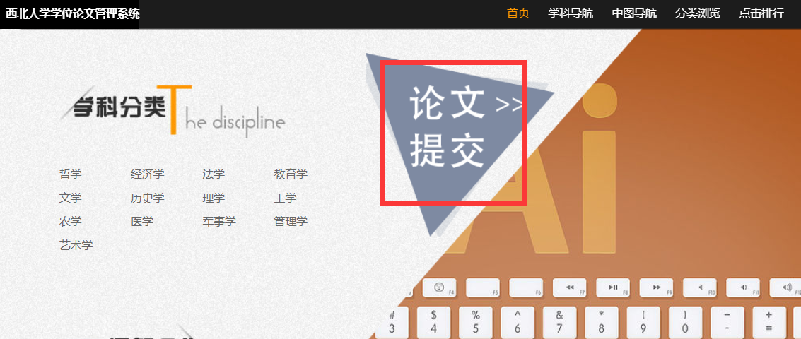 (2)校外网:用“统一身份认证”账号密码(学号+默认身份证后六位)登录九游会在线登录官网VPN:http://webvpn.nwu.edu.cn,点击图书馆主页-论文提交进入提交地址,或直接跳转到202.117.102.160,用学号注册新用户后开始提交论文。