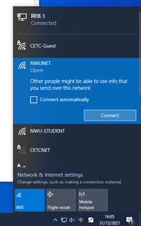 第一步:连接NWUNET无线