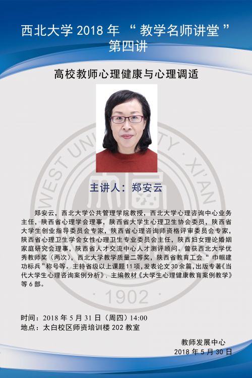 教学名师讲堂第四讲 - 高校教师心理健康与心理调适