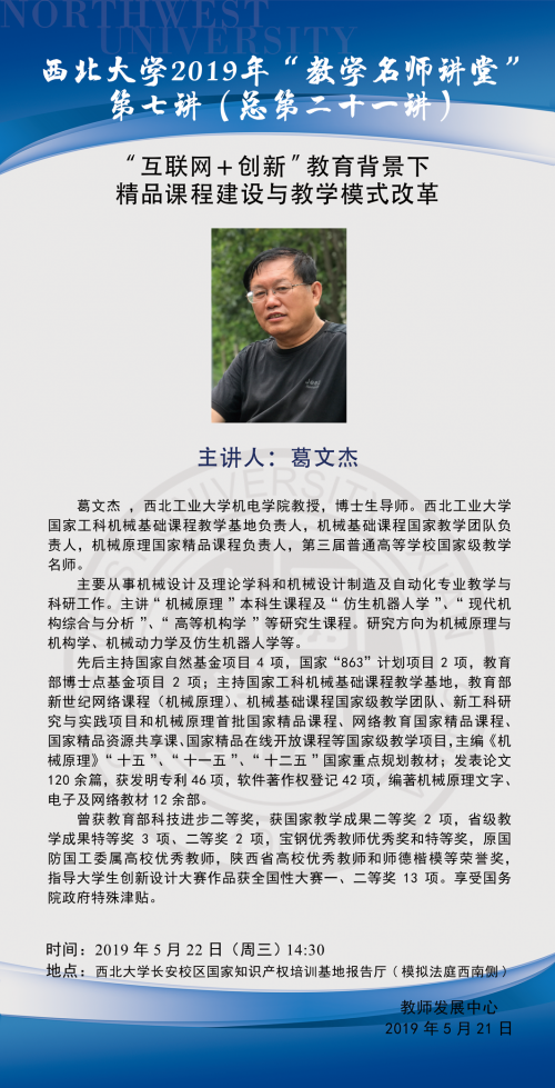 2019年教学名师讲堂第七讲-“互联网+创新”教育背景下 精品课程建设与教学模式改革