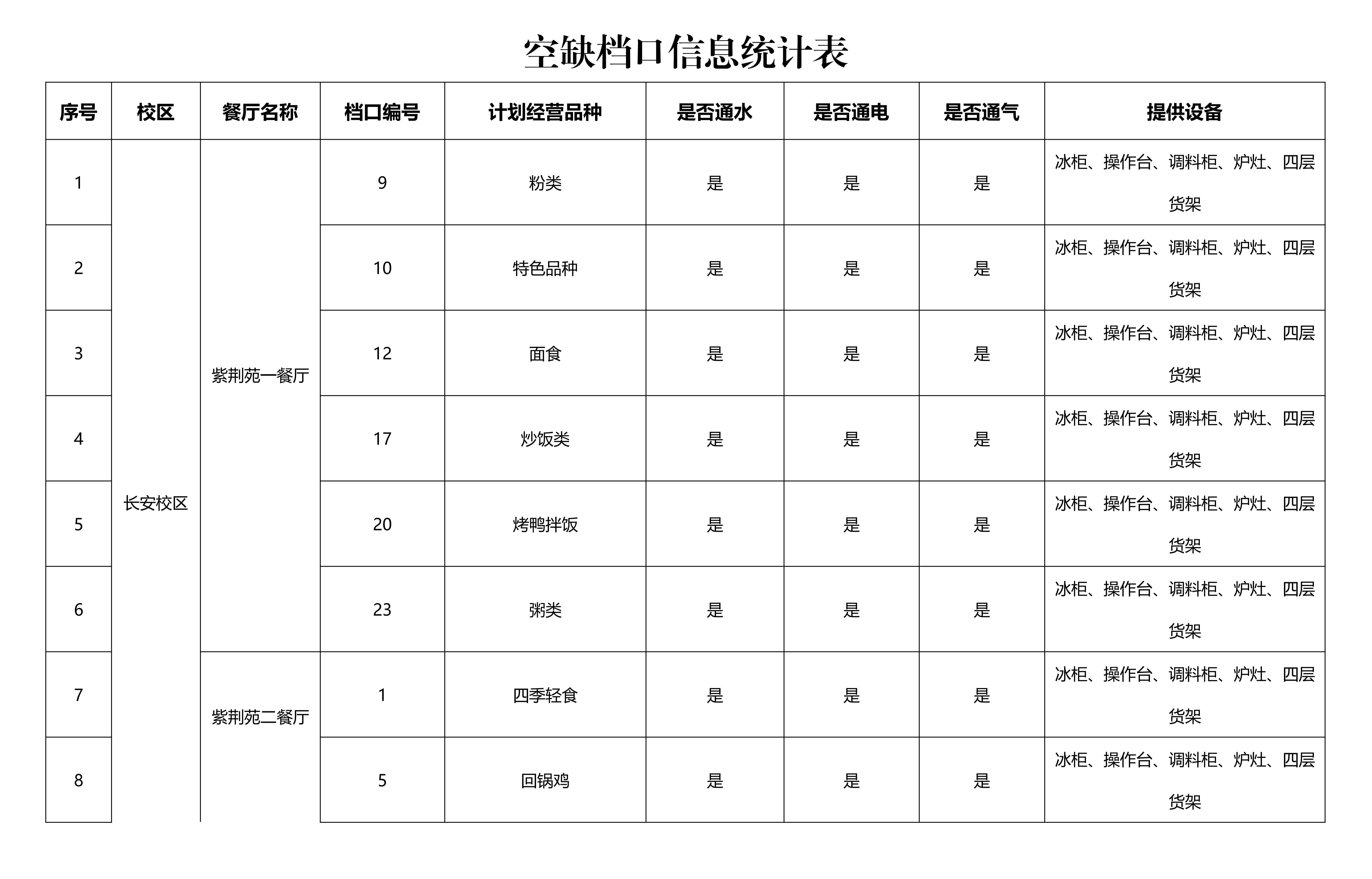 项目简介:本次采用公开遴选方式共引进26个档口,部分提供设备,相关信息详见下表。