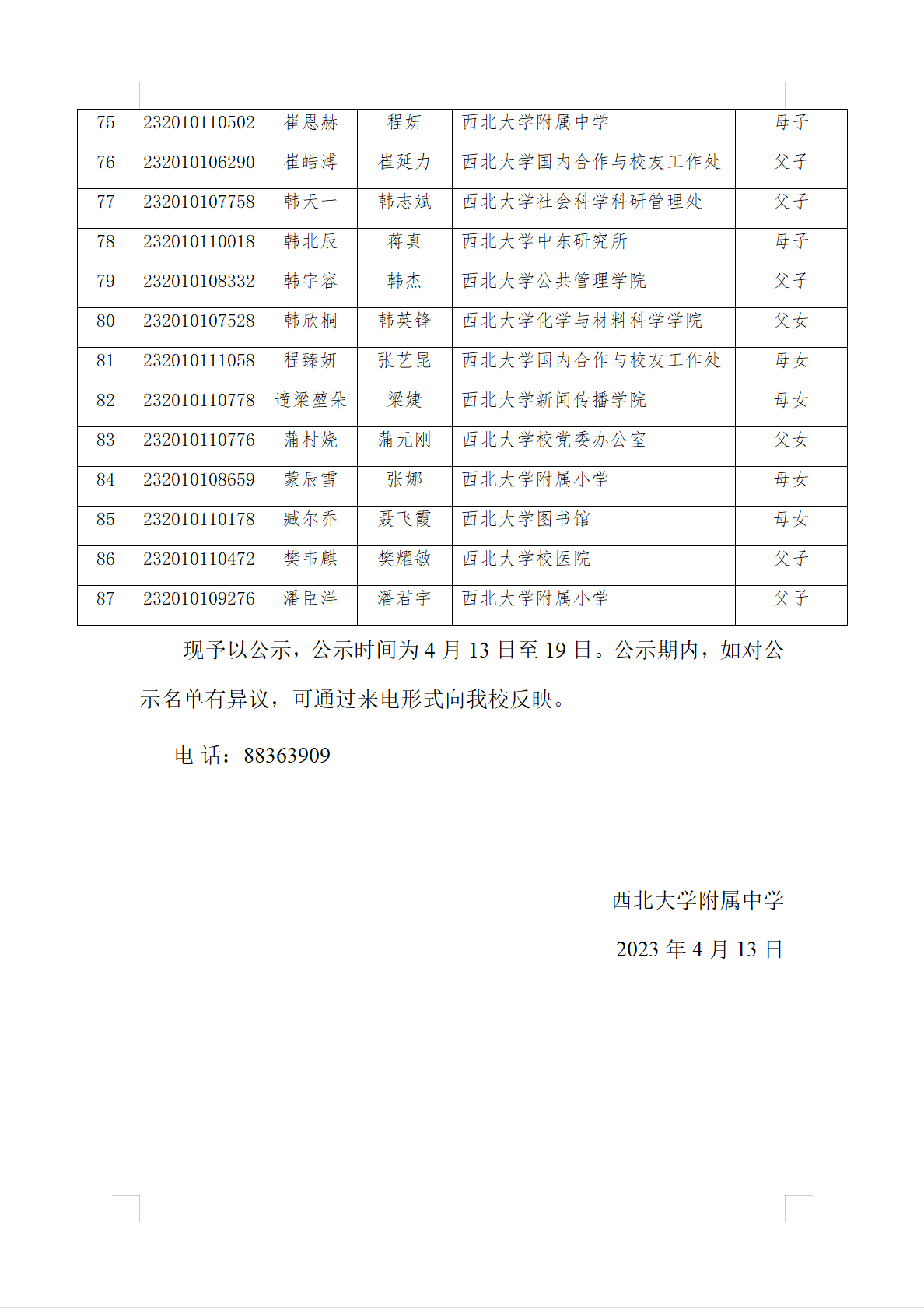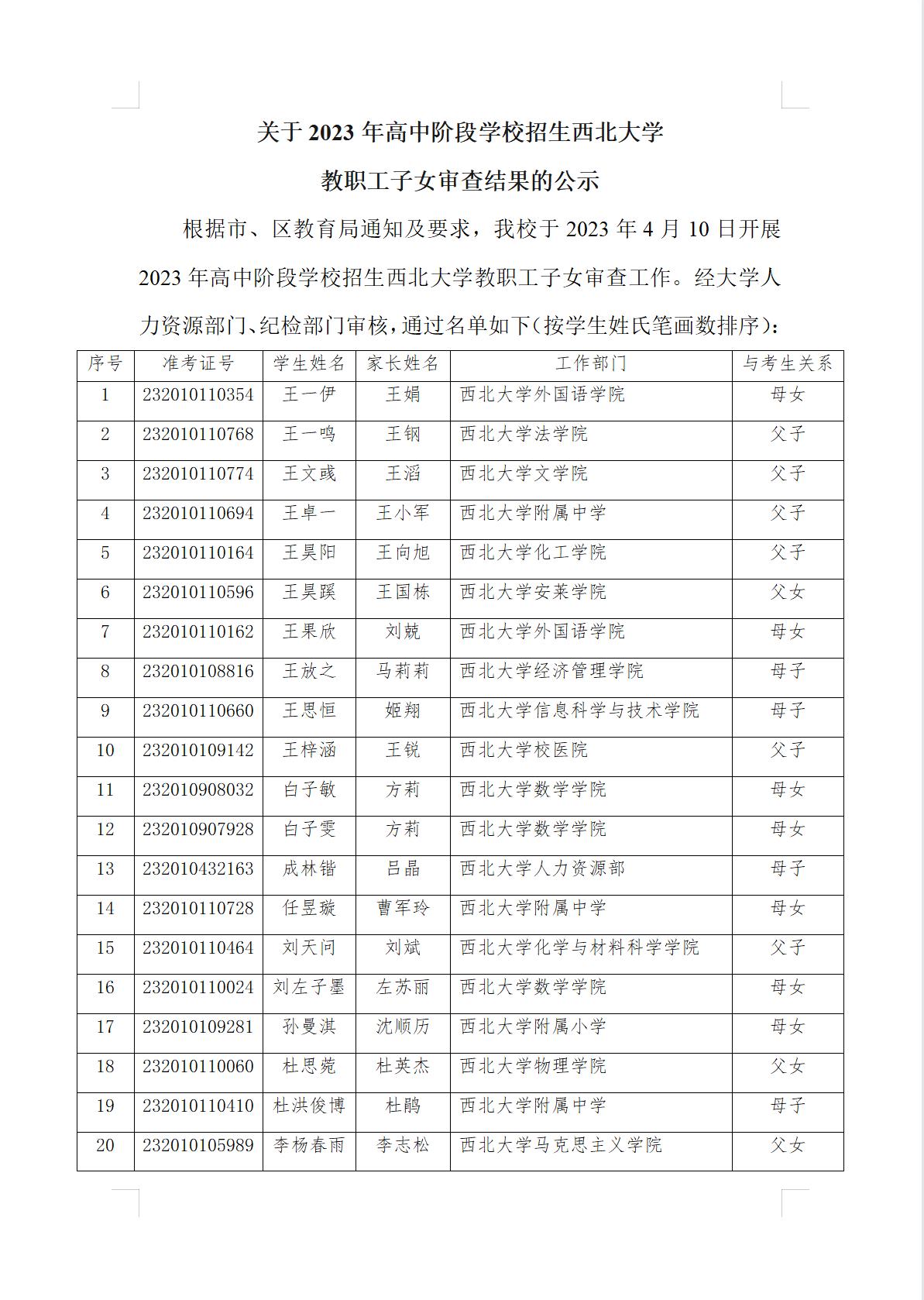 关于2023年高中阶段学校招生九游会在线登录官网教职工子女审查结果的公示