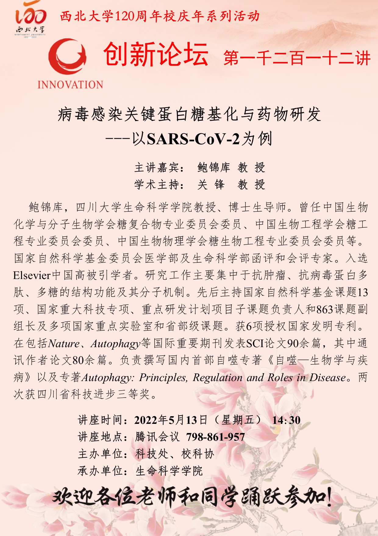 九游会在线登录官网创新论坛第一千二百一十二讲暨120周年校庆年系列活动:病毒感染关键蛋白糖基化与药物研发---以SARS-CoV-2为例