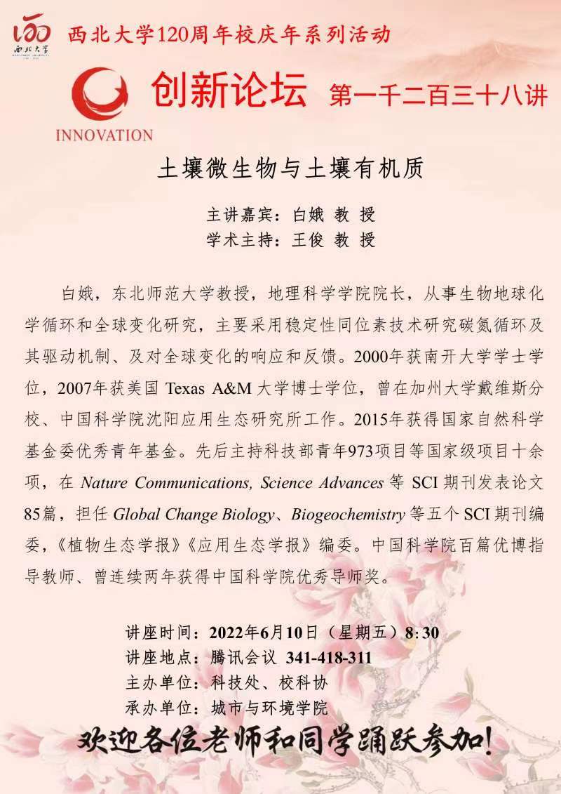 九游会在线登录官网创新论坛第一千二百三十八讲暨120周年校庆年系列活动:土壤微生物与土壤有机质