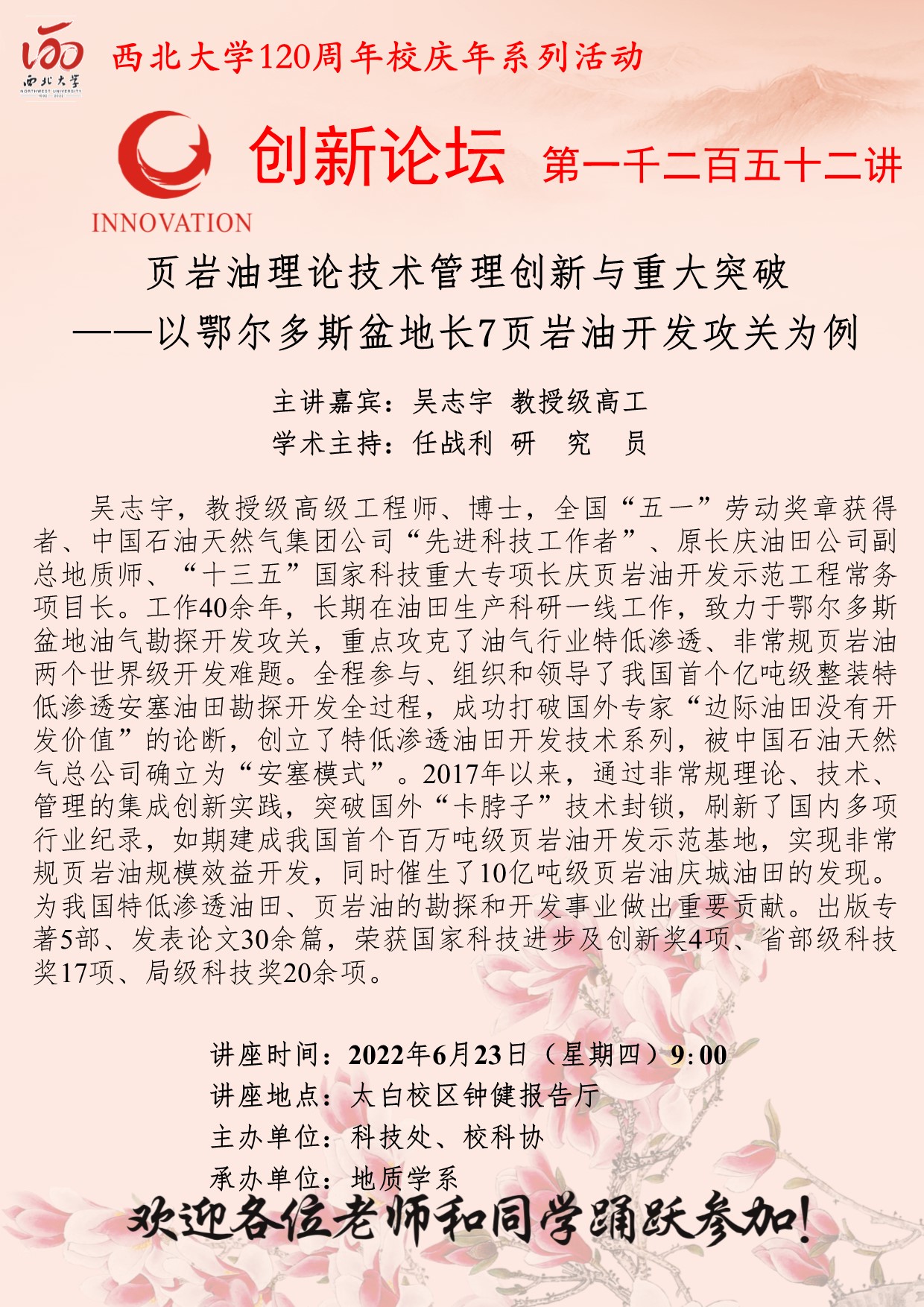 九游会在线登录官网创新论坛第一千二百五十二讲暨120周年校庆年系列活动:页岩油理论技术管理创新与重大突破——以鄂尔多斯盆地长7页岩油开发攻关为例 作者:吴志宇 教授级高工 编辑: 时间:2022-06-21