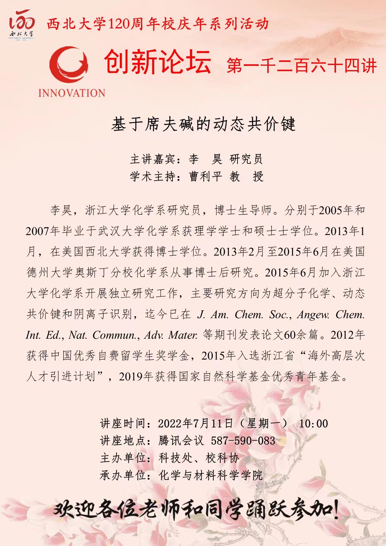 九游会在线登录官网创新论坛第一千二百六十五讲暨120周年校庆年系列活动:可控超分子聚合与功能化