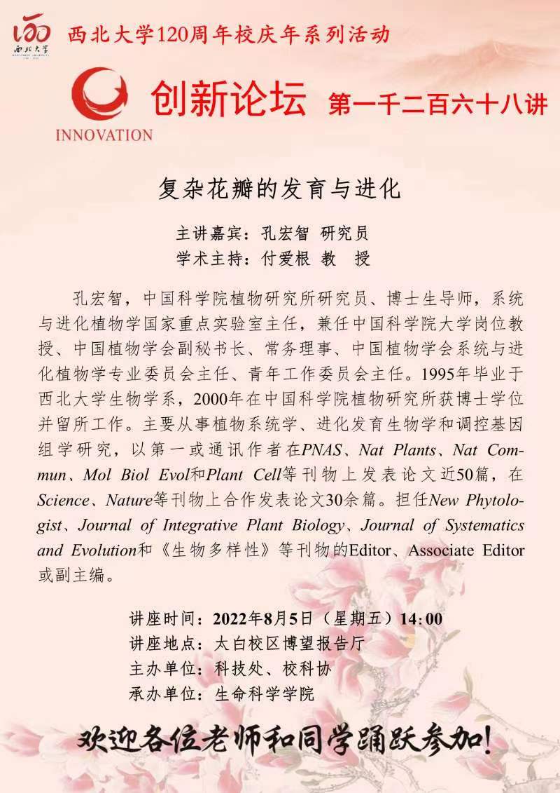 九游会在线登录官网创新论坛第一千二百六十八讲暨120周年校庆年系列活动:复杂花瓣的发育与进化