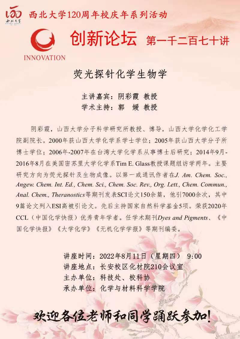 九游会在线登录官网创新论坛第一千二百七十讲暨120周年校庆年系列活动:荧光探针化学生物学