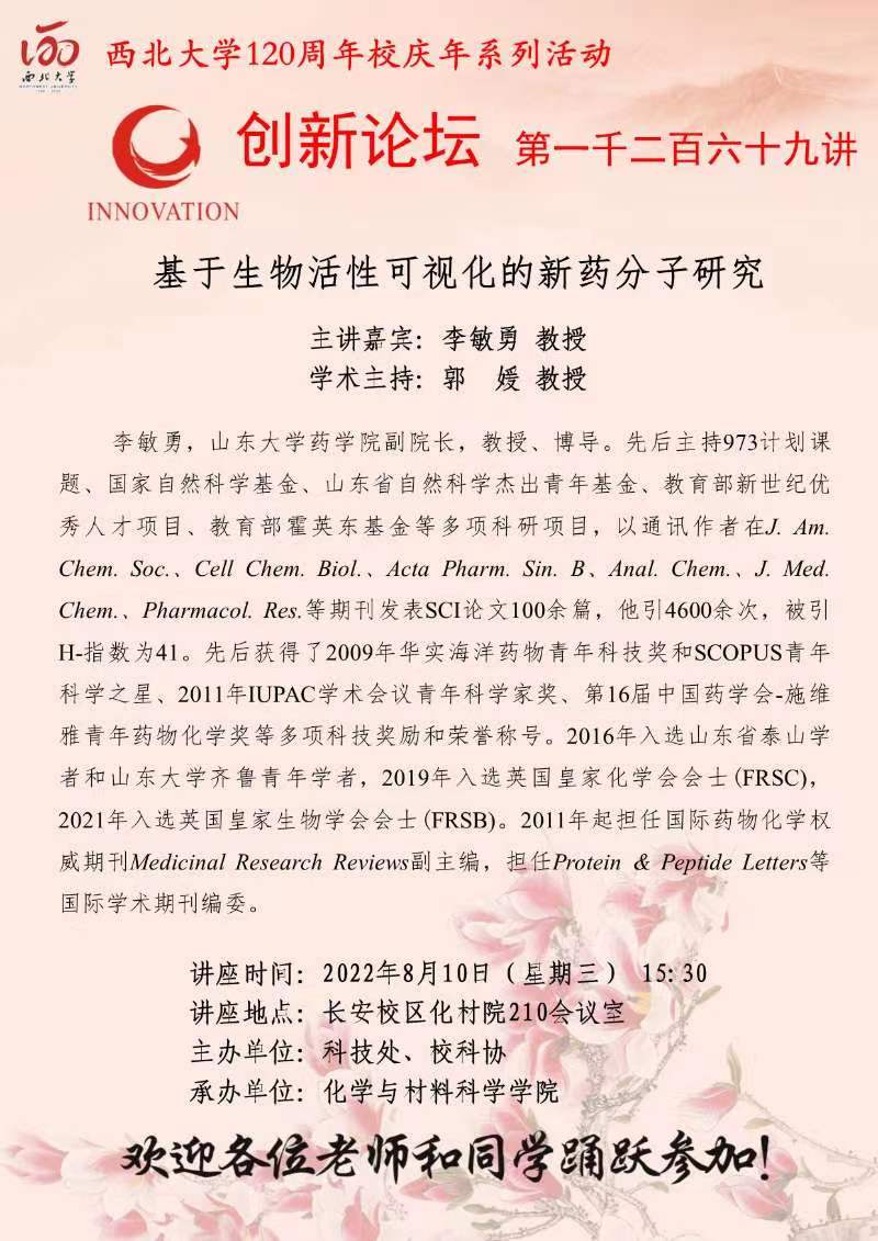 九游会在线登录官网创新论坛第一千二百七十讲暨120周年校庆年系列活动:荧光探针化学生物学