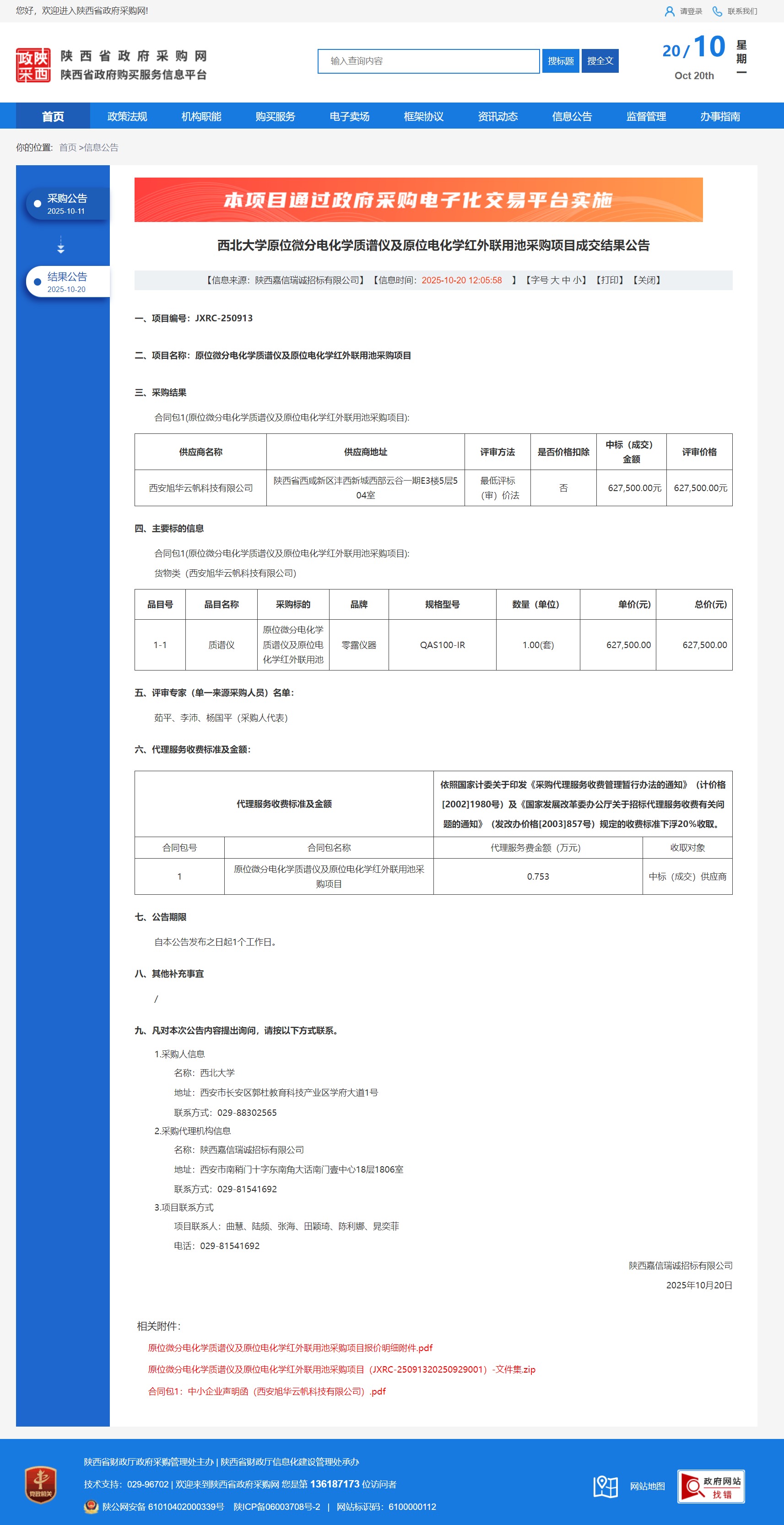 九游会在线登录官网原位微分电化学质谱仪及原位电化学红外联用池采购项目成交结果公告