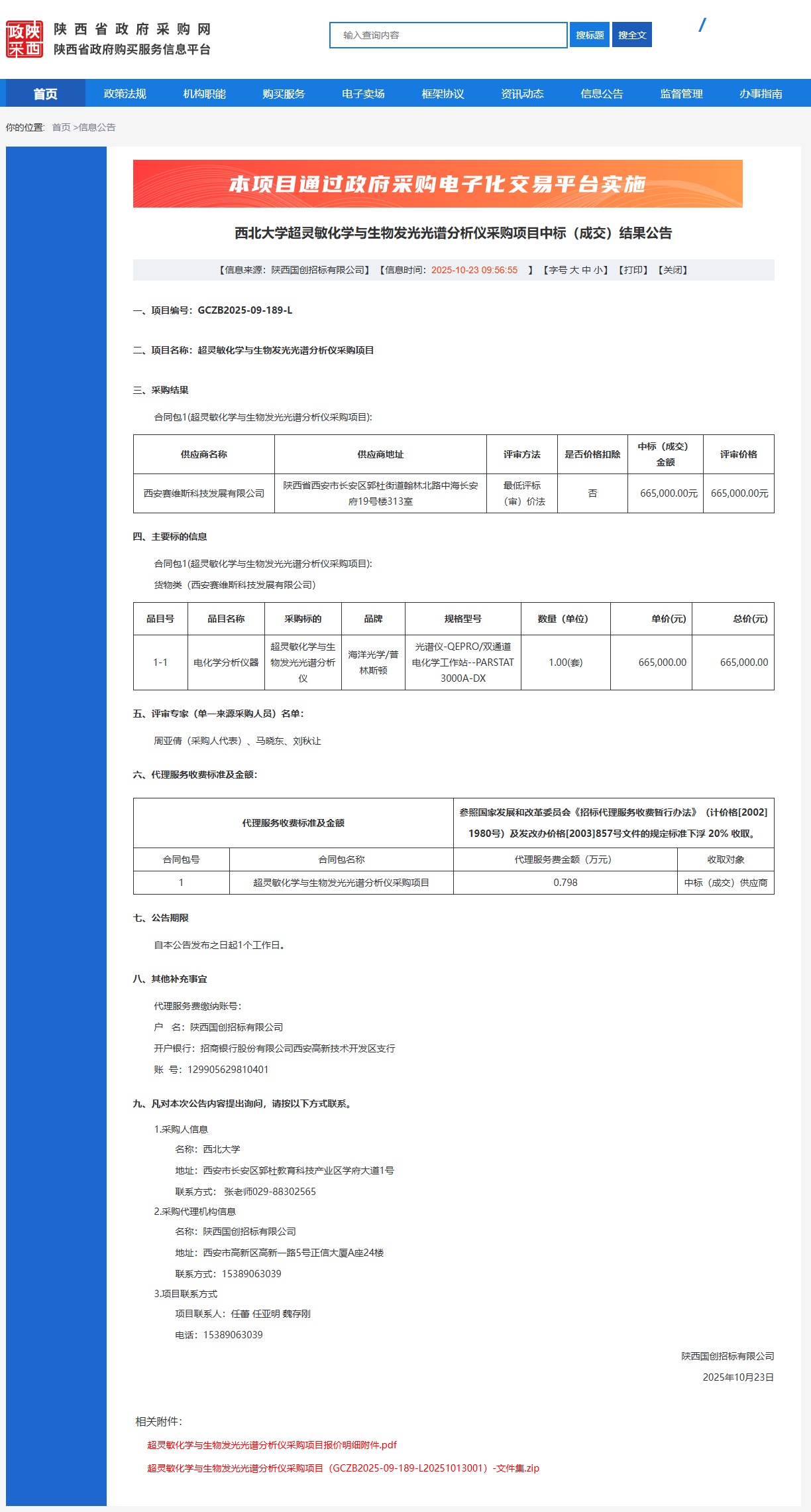 九游会在线登录官网超灵敏化学与生物发光光谱分析仪采购项目中标(成交)结果公告