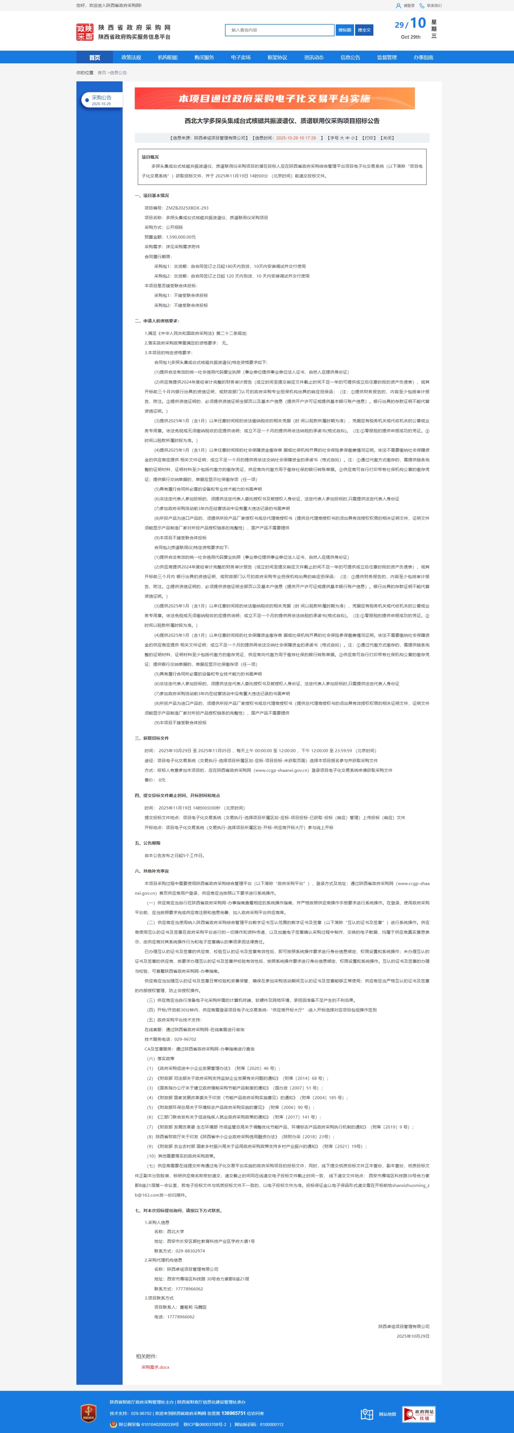 九游会在线登录官网多探头集成台式核磁共振波谱仪、质谱联用仪采购项目招标公告 作者:国有资产管理处 编辑:国有资产管理处 时间:2025-10-29 原公告链接:https://www.ccgp-shaanxi.gov.cn/freecms/site/shaanxi/ggxx/info/2025/8a69c54f99f77a8f019a2efec46e4a64.html?noticeType=001011¬iceId=e7208489-b4a1-11f0-8063-08c0eb20c666