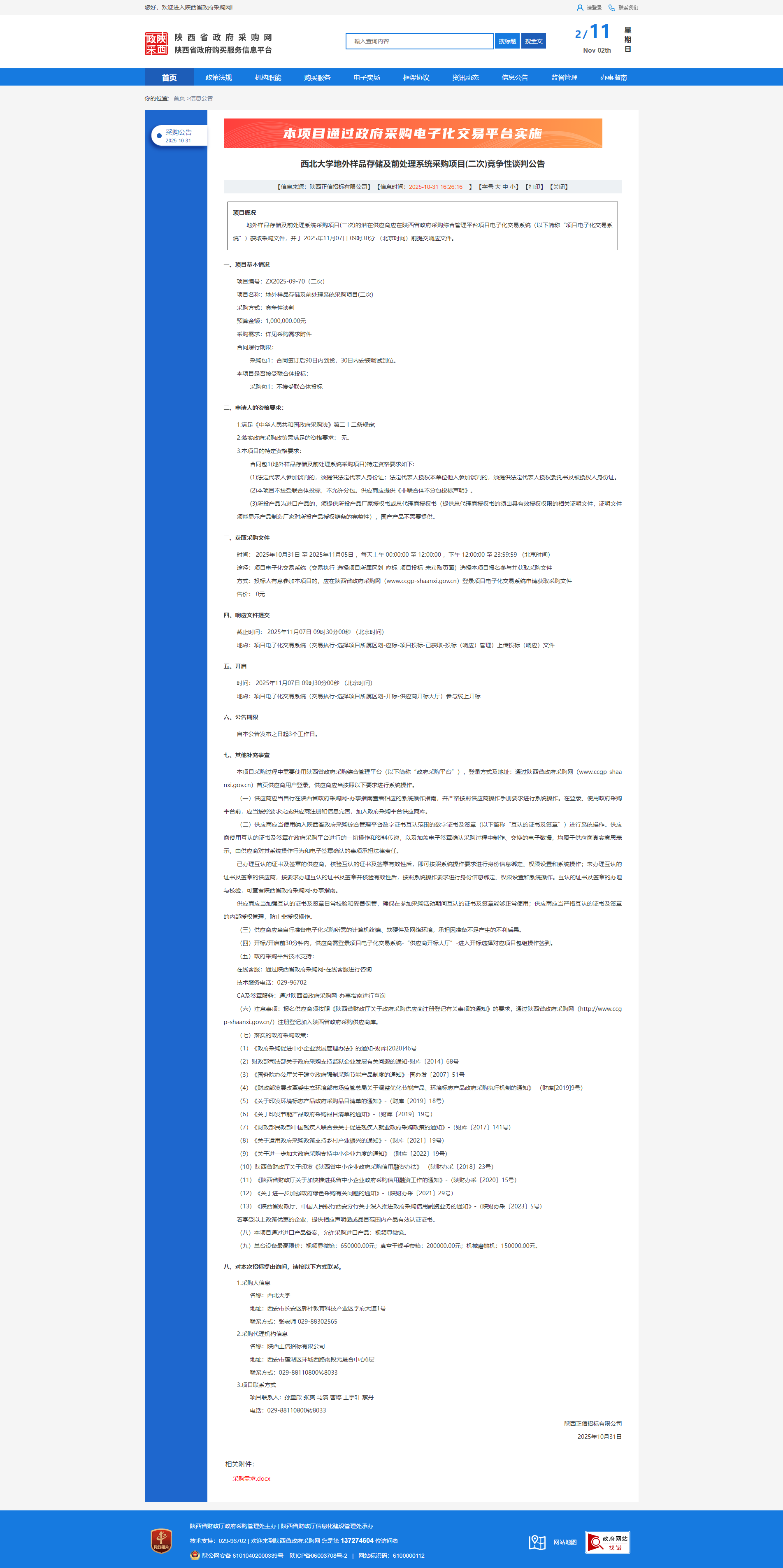 九游会在线登录官网地外样品存储及前处理系统采购项目(二次)竞争性谈判公告