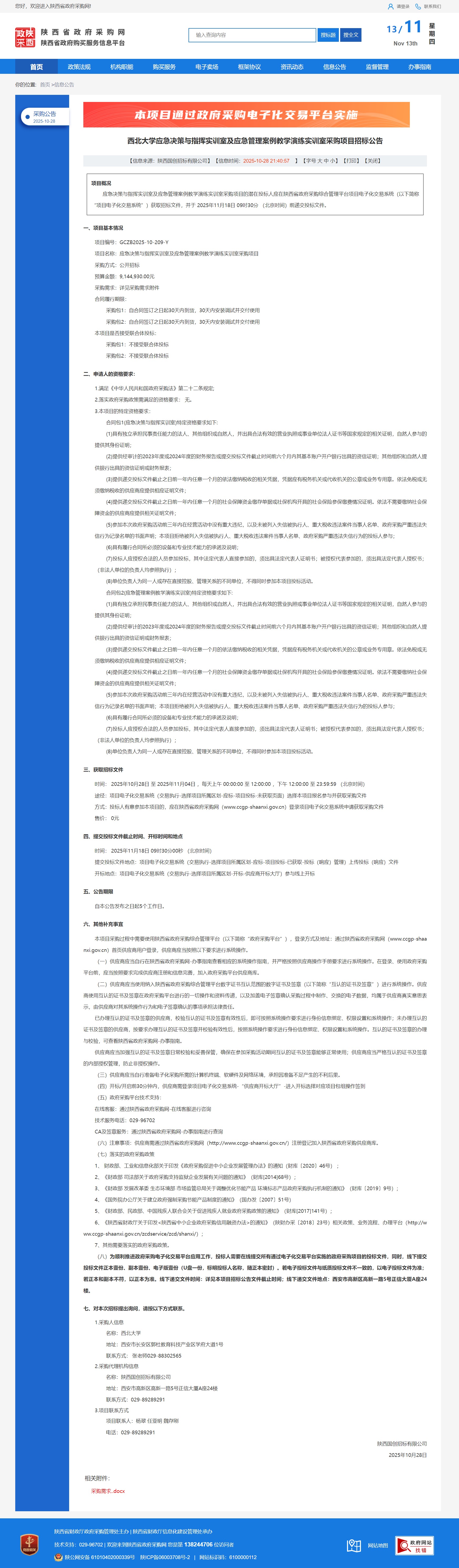 九游会在线登录官网应急决策与指挥实训室及应急管理案例教学演练实训室采购项目招标公告