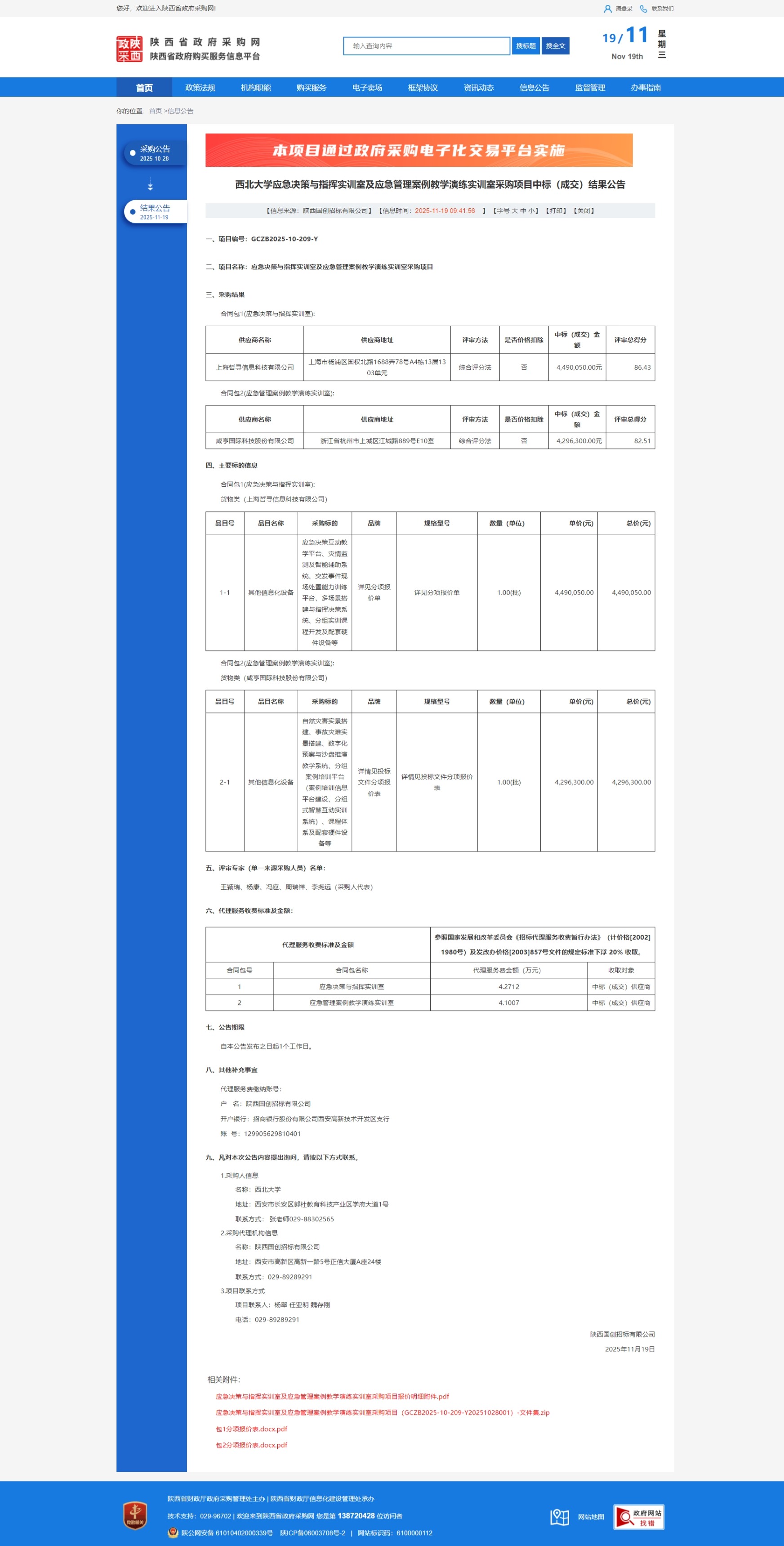 九游会在线登录官网应急决策与指挥实训室及应急管理案例教学演练实训室采购项目中标(成交)结果公告 作者:国有资产管理处 编辑:国有资产管理处 时间:2025-11-19 原公告链接:https://www.ccgp-shaanxi.gov.cn/freecms/site/shaanxi/ggxx/info/2025/8a69c5539a636e42019a99b20ea100c2.html?noticeType=001021¬iceId=296ad358-c4eb-11f0-8063-08c0eb20c666