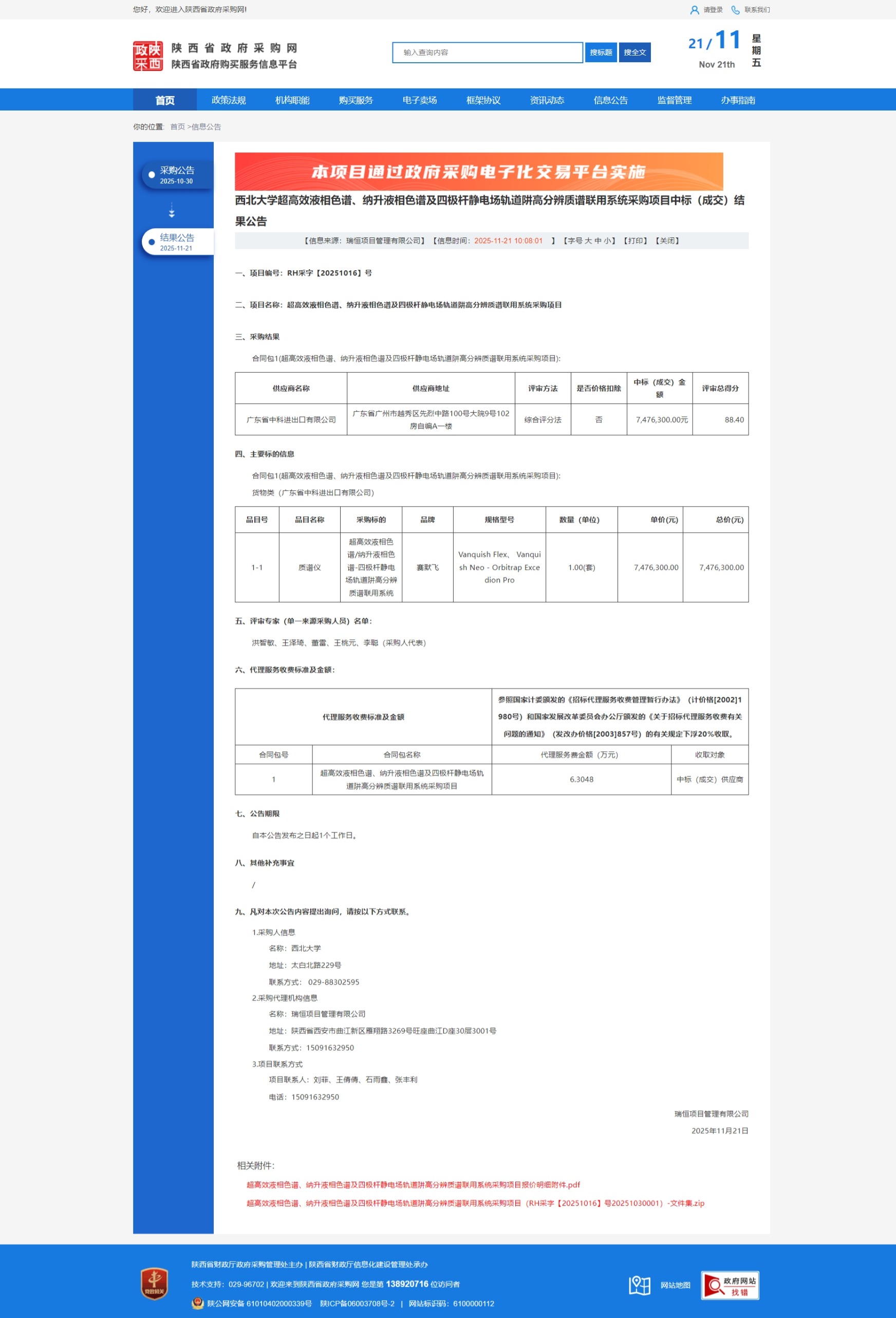 九游会在线登录官网超高效液相色谱、纳升液相色谱及四极杆静电场轨道阱高分辨质谱联用系统采购项目中标(成交)结果公告 作者:国有资产管理处 编辑:国有资产管理处 时间:2025-11-21 原公告链接:https://www.ccgp-shaanxi.gov.cn/freecms/site/shaanxi/ggxx/info/2025/8a69c90c9a9ae48e019aa4271c2e478e.html?noticeType=001021¬iceId=23cedee1-c681-11f0-8063-08c0eb20c666