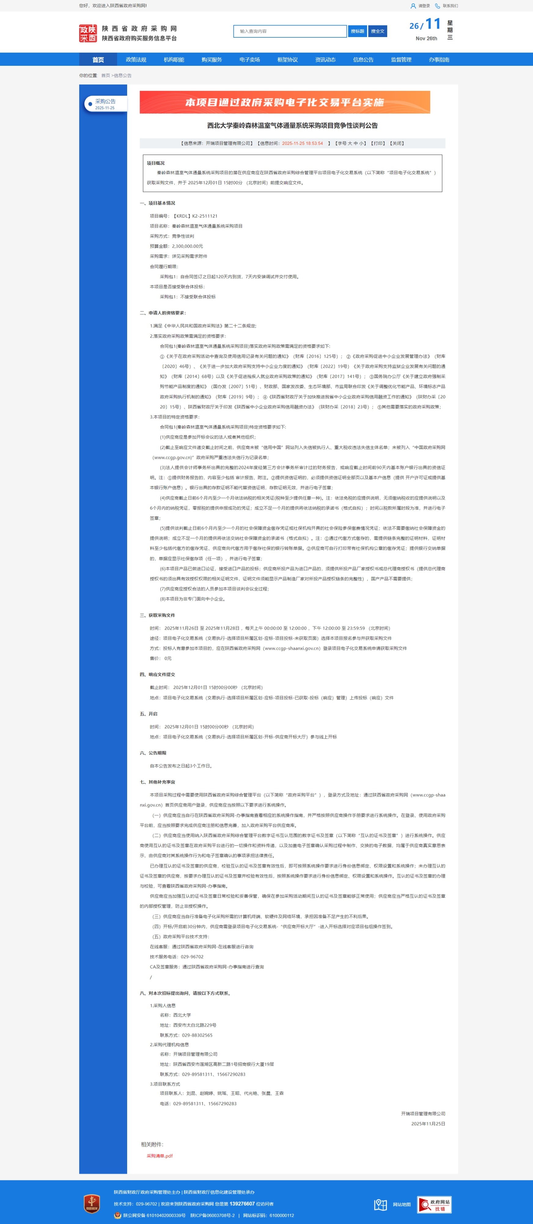 九游会在线登录官网秦岭森林温室气体通量系统采购项目竞争性谈判公告 作者: 编辑:国有资产管理处 时间:2025-11-26 原公告链接:https://www.ccgp-shaanxi.gov.cn/freecms/site/shaanxi/ggxx/info/2025/8a69c17b9a636c6b019aba957b133355.html?noticeType=001013¬iceId=46be2f3b-c9ef-11f0-8063-08c0eb20c666