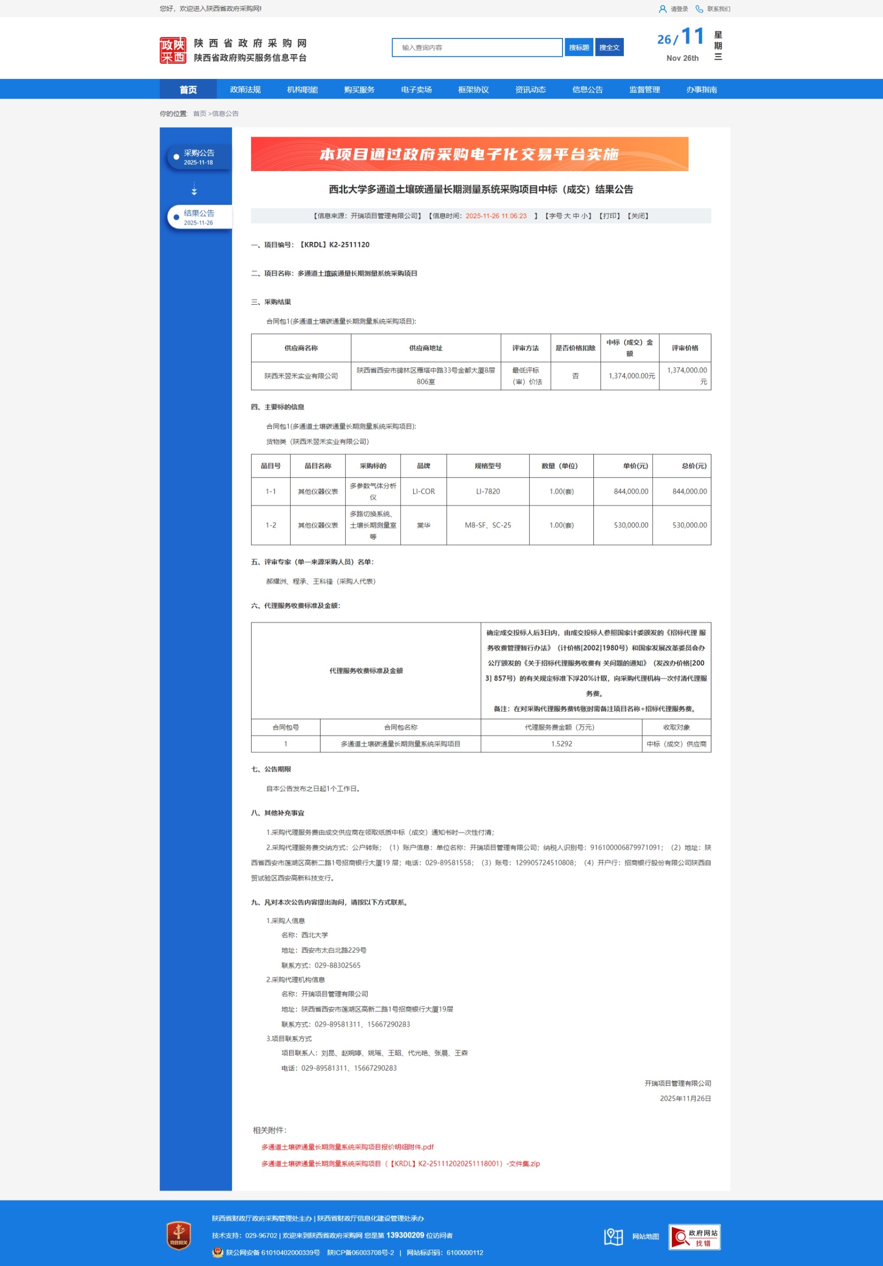 九游会在线登录官网多通道土壤碳通量长期测量系统采购项目中标(成交)结果公告 作者: 编辑:国有资产管理处 时间:2025-11-26 原公告链接:https://www.ccgp-shaanxi.gov.cn/freecms/site/shaanxi/ggxx/info/2025/8a69c6d09a636c6c019abdc987856a03.html?noticeType=001023¬iceId=21b0d48e-ca77-11f0-8063-08c0eb20c666