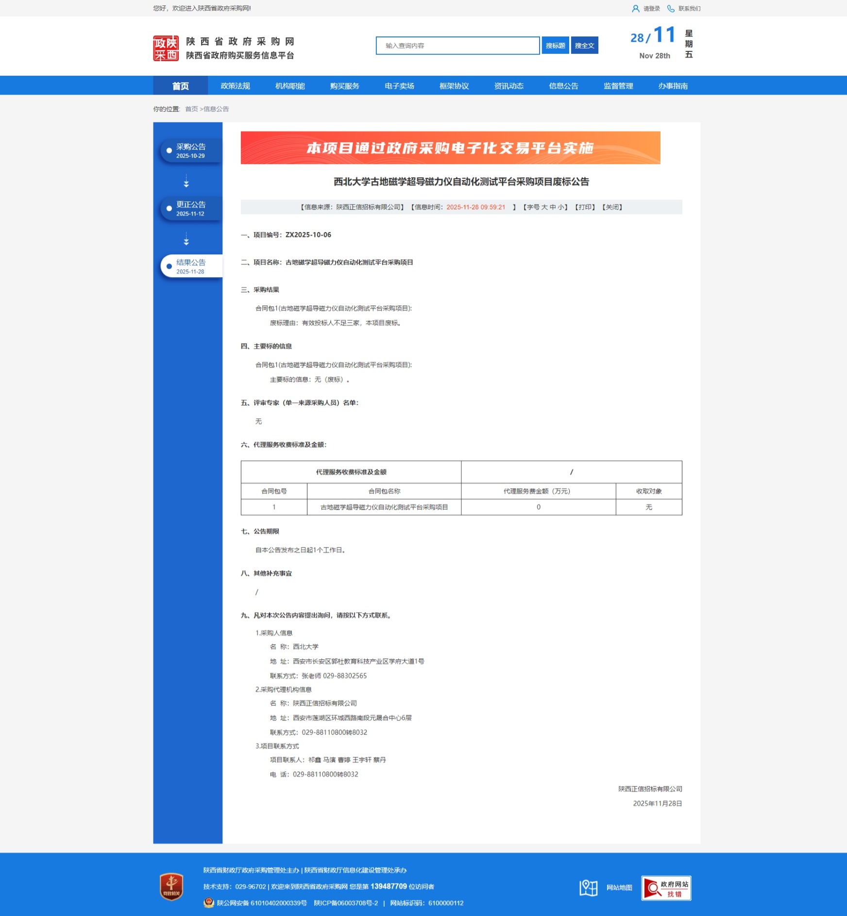 九游会在线登录官网古地磁学超导磁力仪自动化测试平台采购项目废标公告 作者: 编辑:国有资产管理处 时间:2025-11-28 原公告链接:https://www.ccgp-shaanxi.gov.cn/freecms/site/shaanxi/ggxx/info/2025/8a69c0019a9a55ca019ac81cae6226cf.html?noticeType=001006¬iceId=19e4ba5f-cc00-11f0-8063-08c0eb20c666